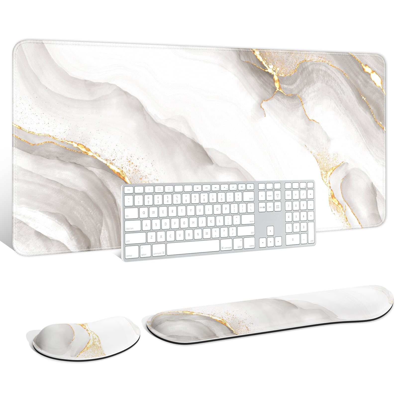 Alfombrilla de mouse grande extendida y soporte para reposamuñecas para teclado, reposamuñecas ergonómico de espuma viscoelástica,