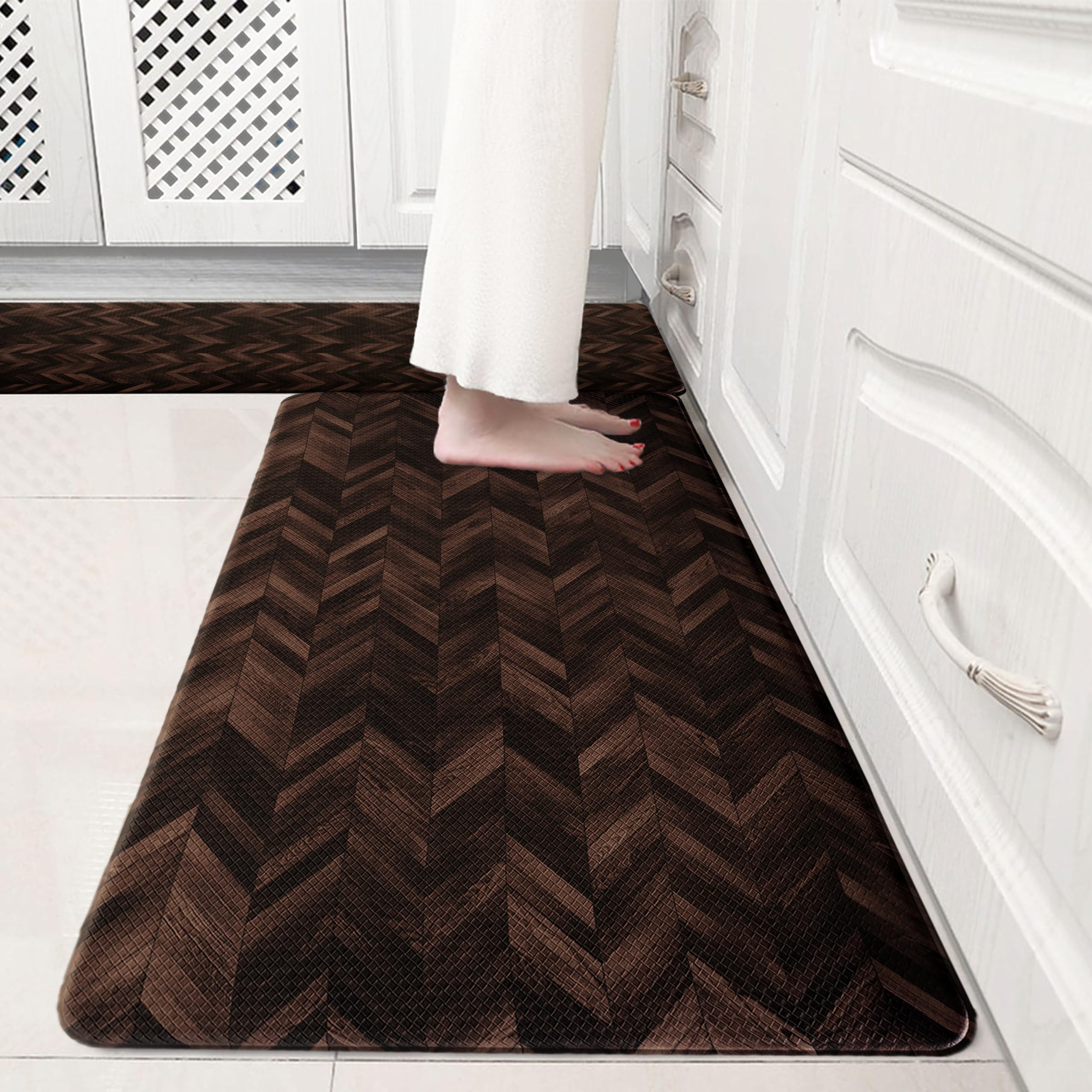 KIMODE – Juego de 2 tapetes de cocina de estilo rústico, antifatiga, antideslizantes, impermeables, ergonómicos, acolchados, cómod