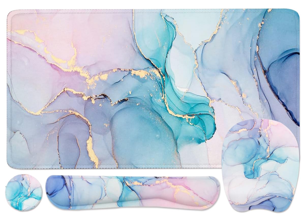 LATEEFAH Alfombrilla de escritorio, alfombrilla de mouse con reposamuñecas, 4 en 1, alfombrilla de mouse grande para escritorio, a