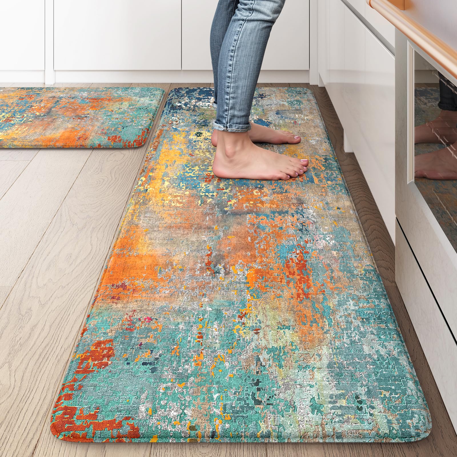LEEVAN Alfombrillas de cocina antideslizantes, acolchadas y antifatiga, 2 piezas, tapete de cocina de espuma viscoelástica imperme