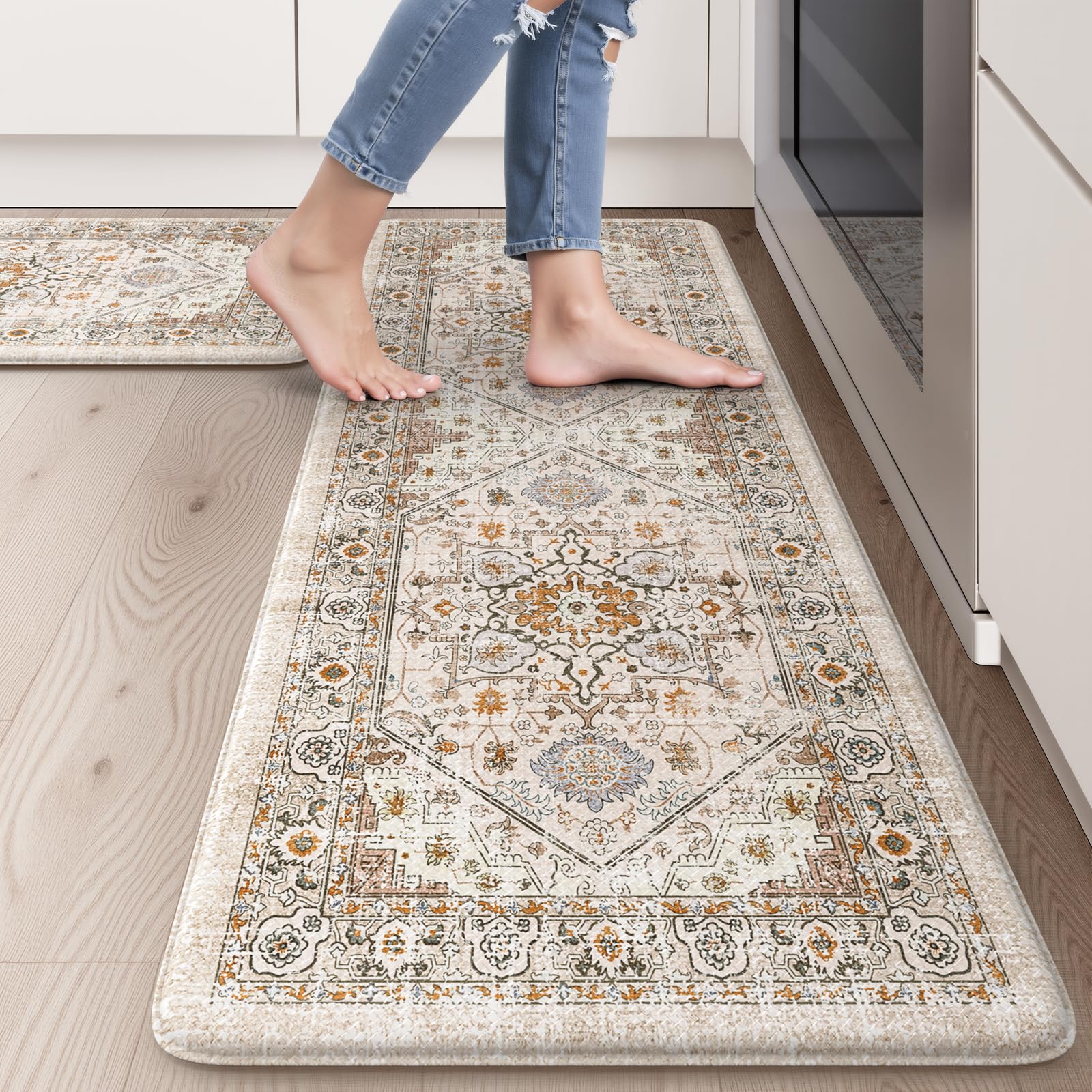 Collive Farmhouse – Juego de 2 tapetes de cocina antifatiga, acolchados para cocina, impermeables, antideslizantes, ergonómicos, c