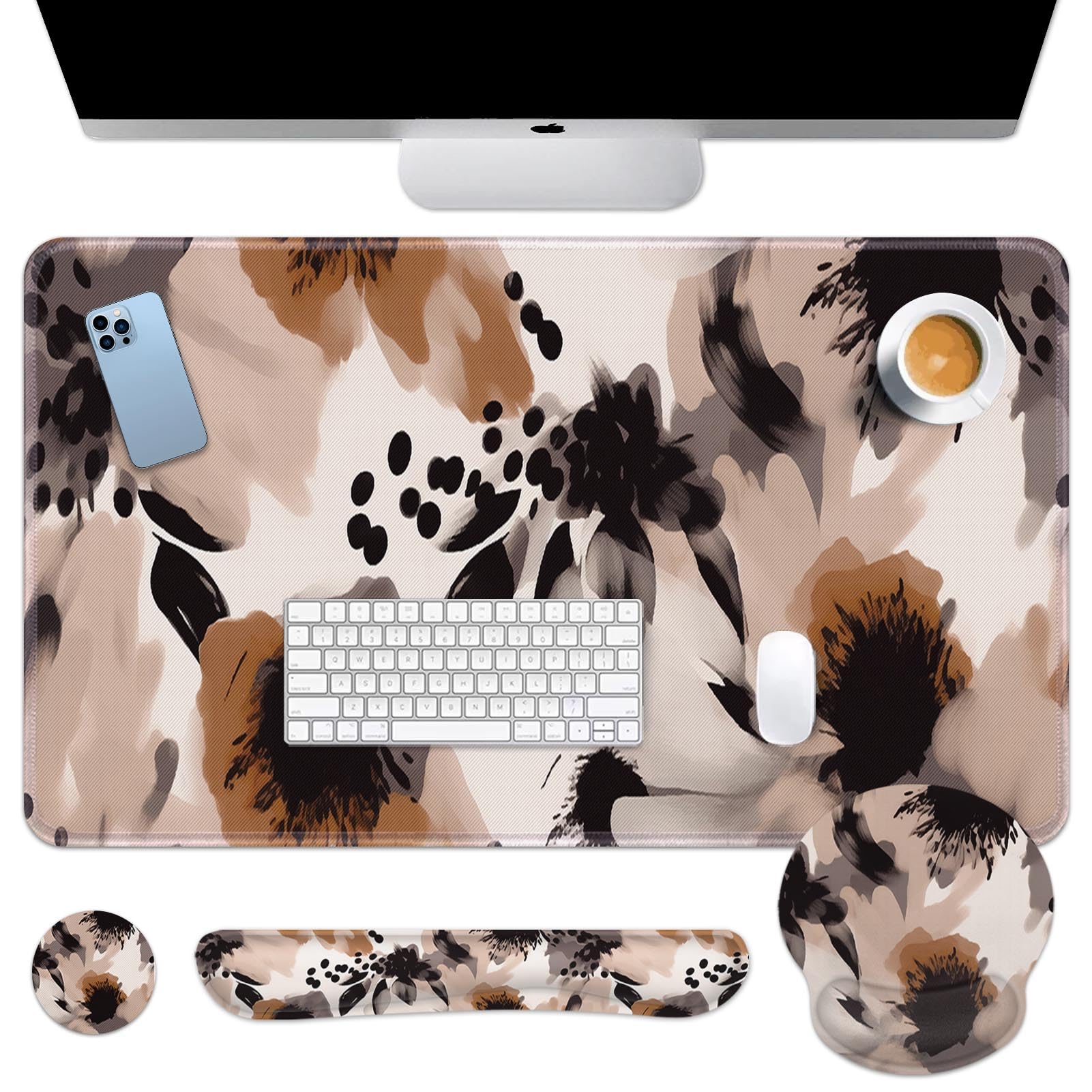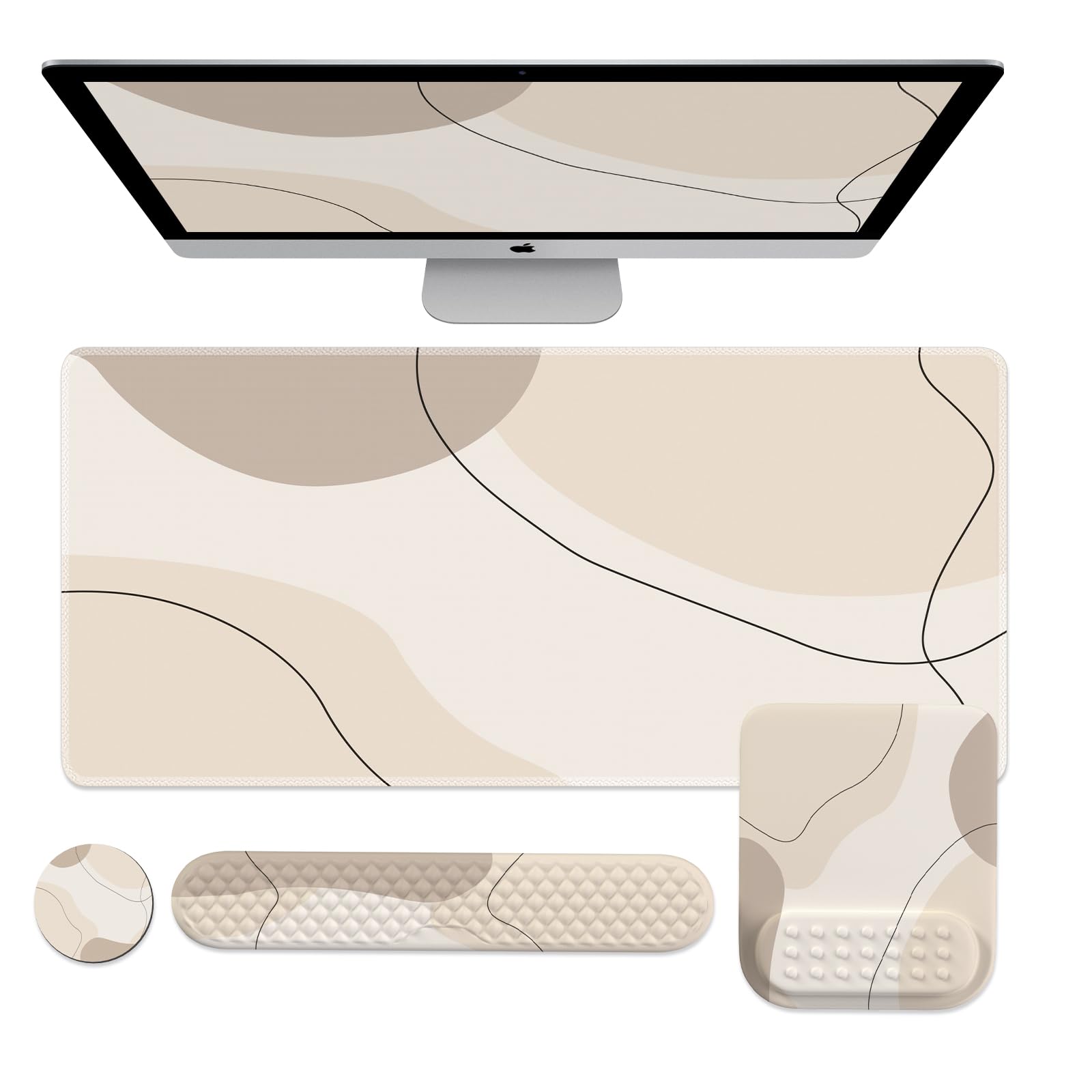 iCasso Alfombrilla de escritorio, juego de soporte para mouse 4 en 1, soporte de muñeca grande para escritorio, reposamuñecas para