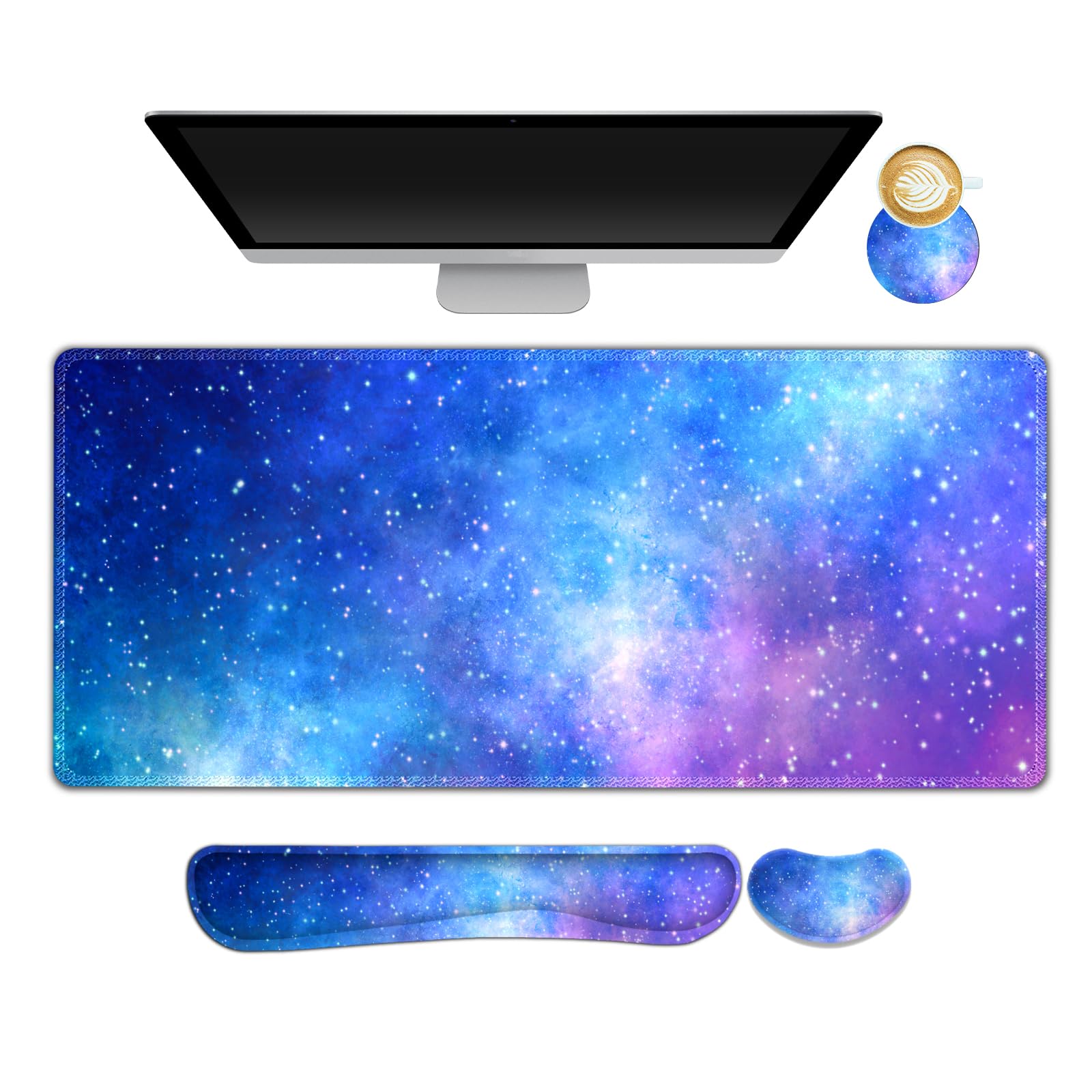 Alfombrilla de mouse grande para juegos + reposamuñecas para teclado + soporte de muñeca + juego de posavasos, espuma viscoelástic