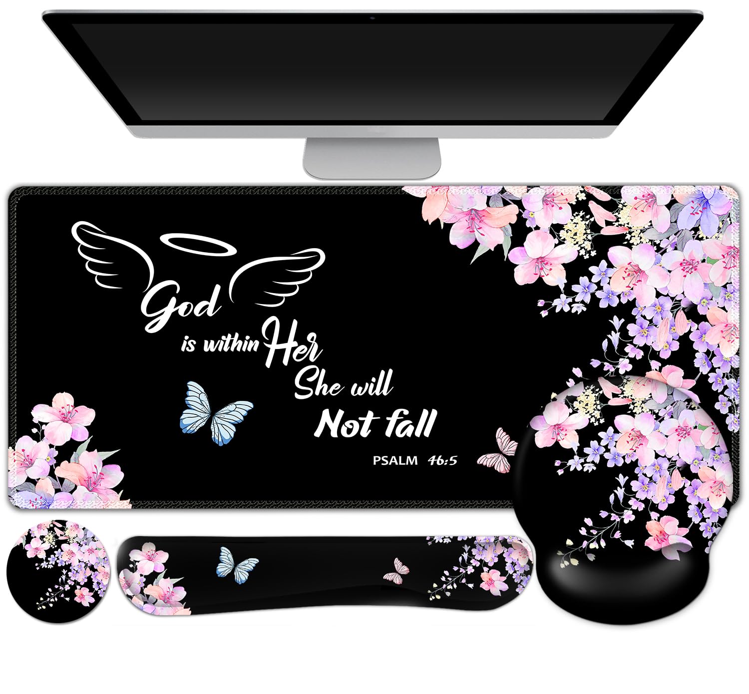 ARTSO Alfombrilla de mouse grande ergonómica para teclado y reposamuñecas, Salmo 46:5, God is Within Her, She Will Not Fall – Vers