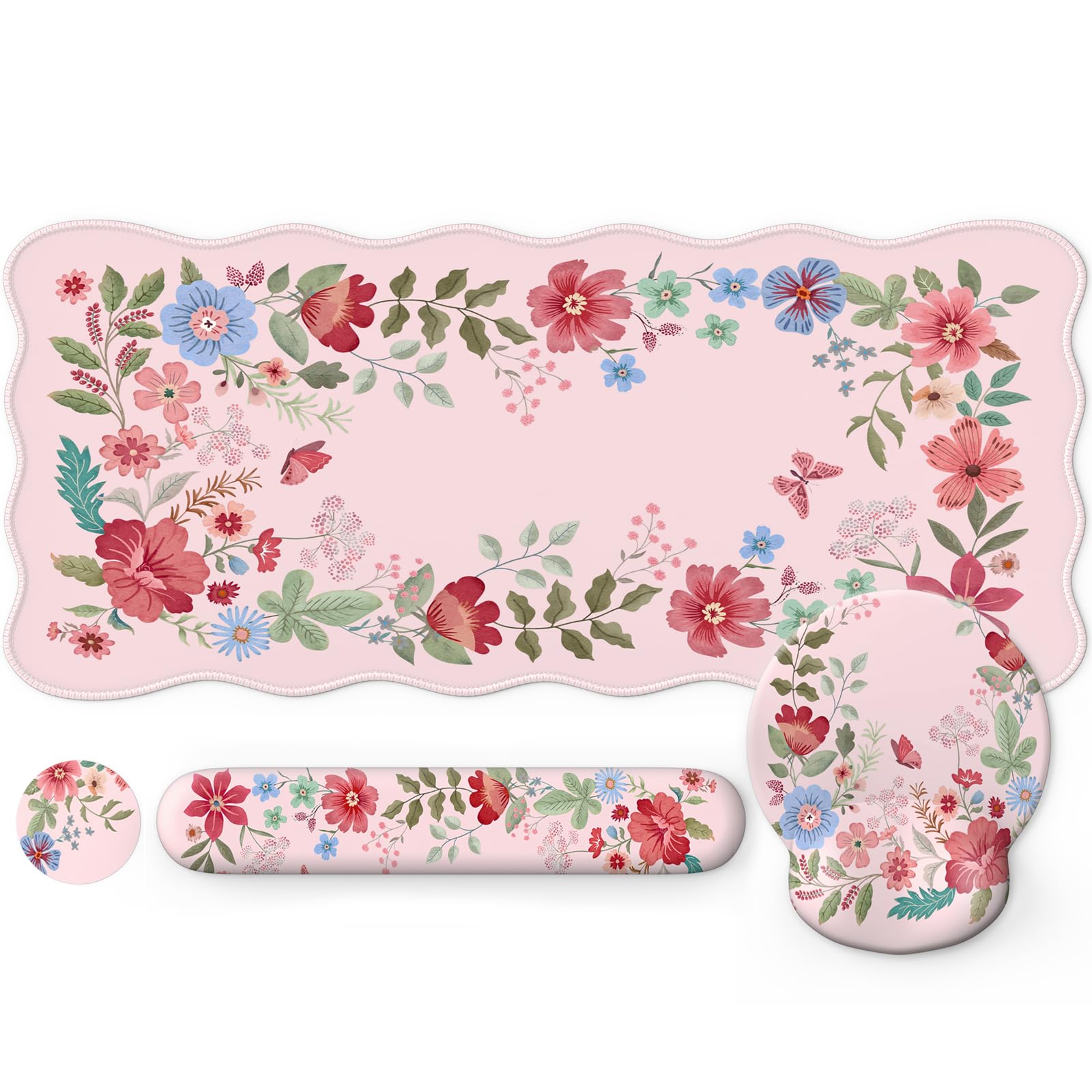 iLeadon Juego de alfombrillas de escritorio con diseño floral rosa para mujer, alfombrilla grande para mouse para escritorio, alfo