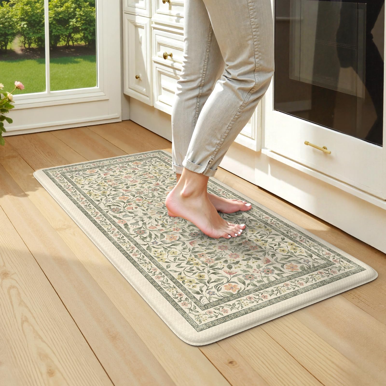 KIMODE Tapete acolchado para cocina, antideslizante, color beige, 20 x 39 pulgadas