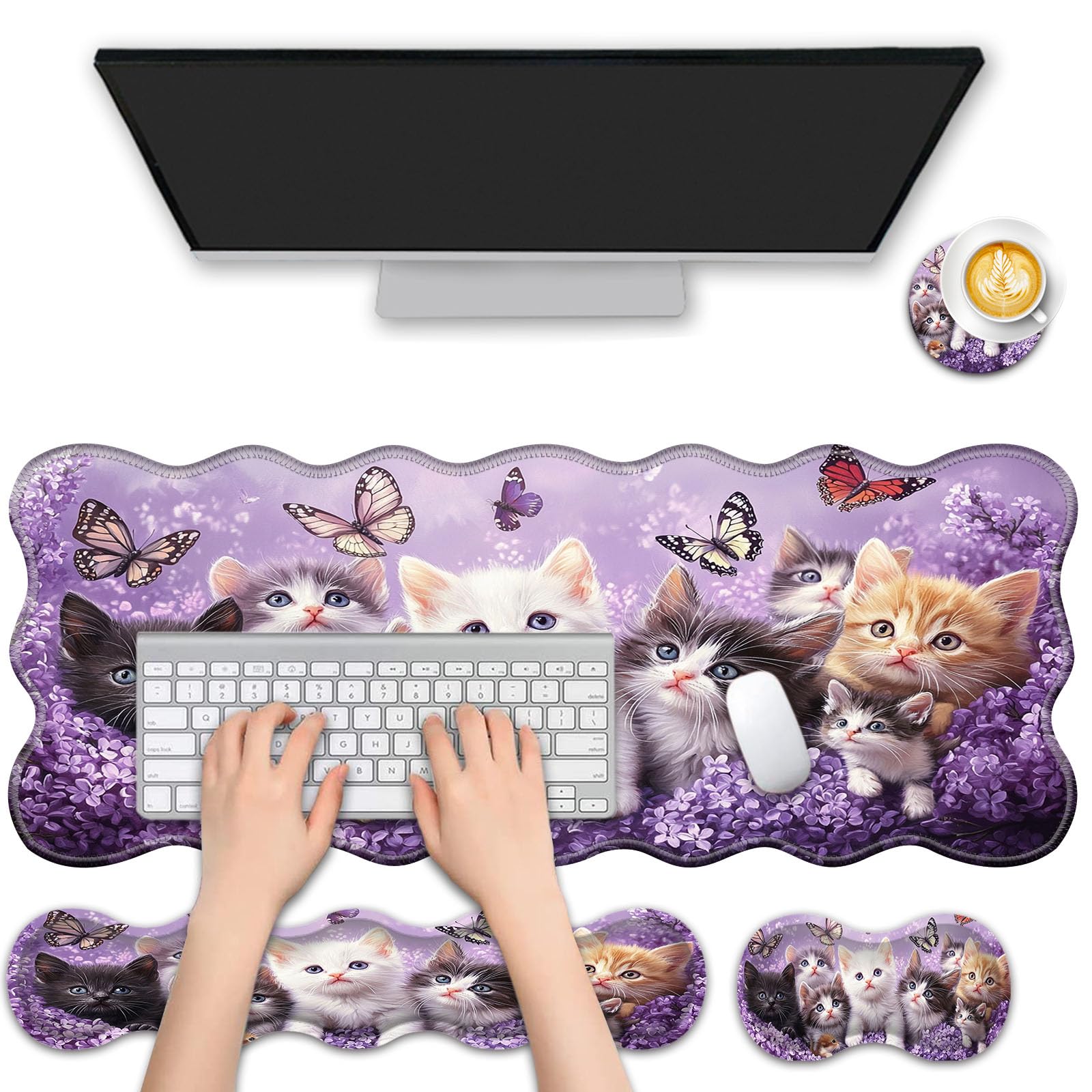 Britimes Juego de alfombrillas para mouse y teclado 4 en 1 grandes, reposamuñecas para teclado, reposamuñecas para mouse, juego de