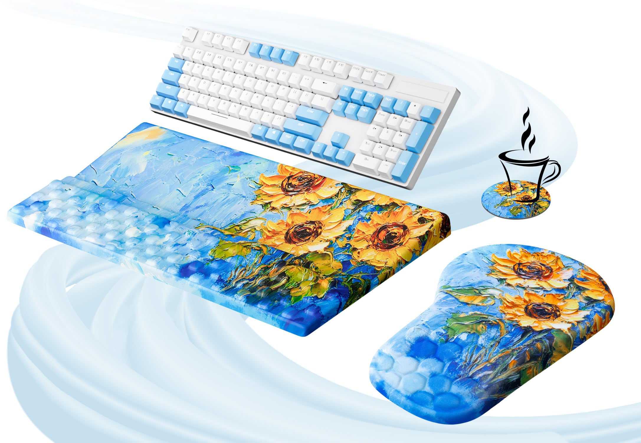 Juego de alfombrillas de escritorio 4 en 1, alfombrilla para mouse con reposamuñecas para teclado, diseño en forma de onda, base d