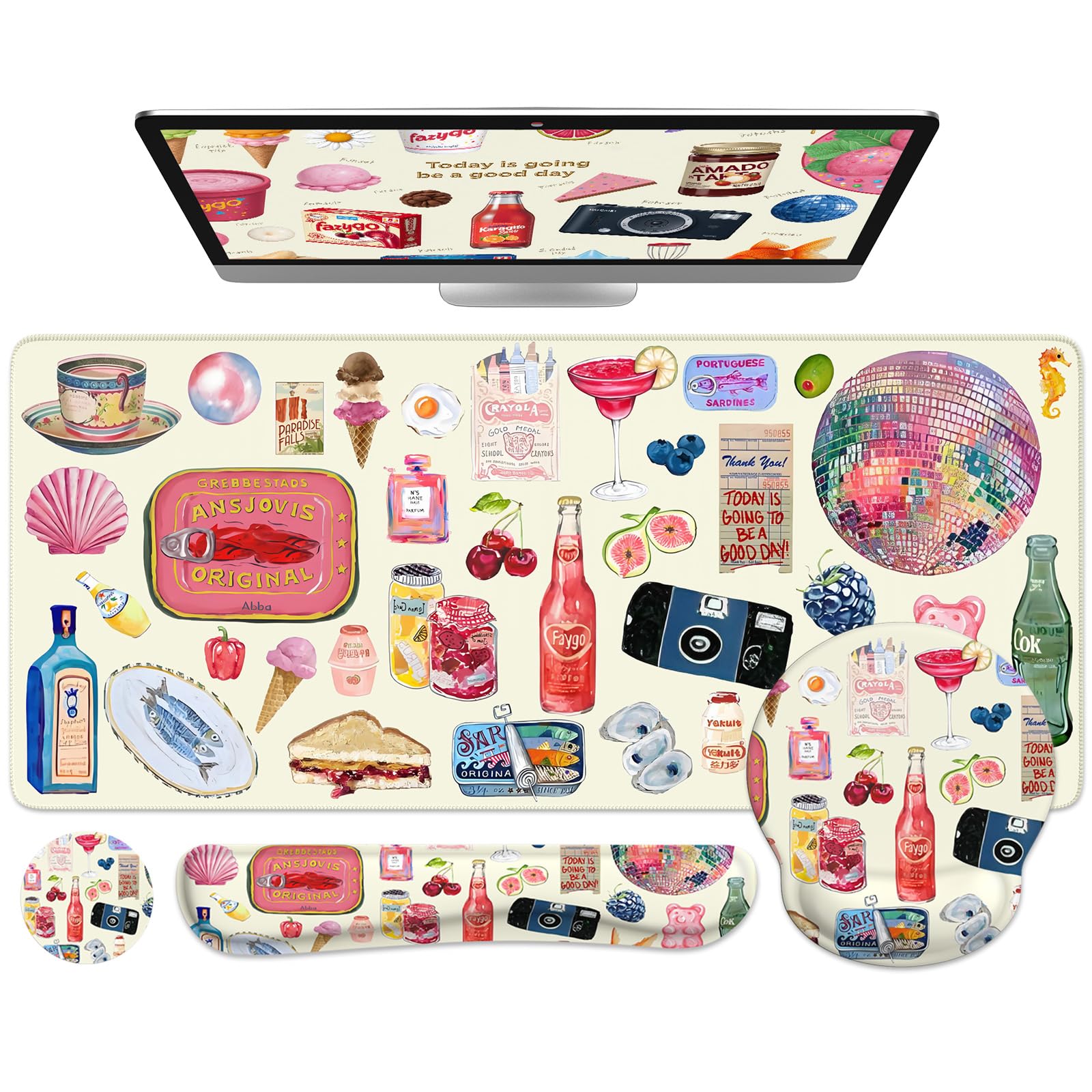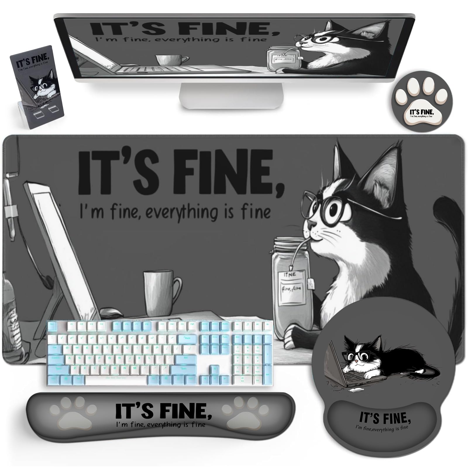 AQQA Divertido juego de alfombrillas de mouse para teclado, alfombrilla XXL para mouse + soporte para reposamuñecas para teclado +