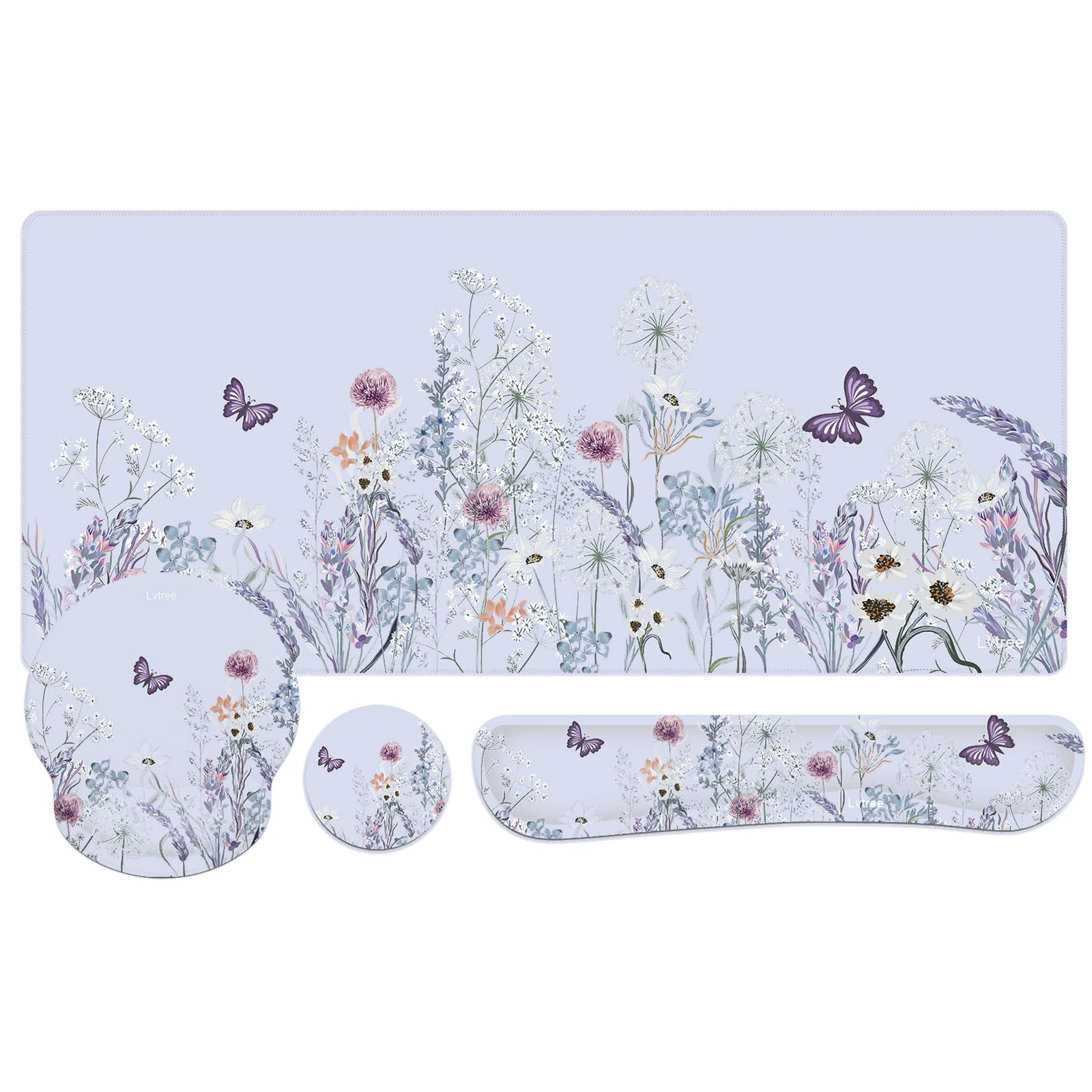 Large Desk Mat Mouse Pad Set – 4-in-1 Mouse Wrist Rest (Purple)
