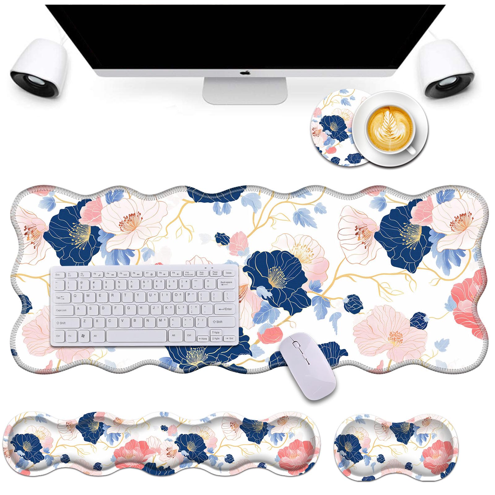 Bxgolkgd Juego de alfombrillas de escritorio, alfombrilla de mouse con reposamuñecas para teclado y reposamuñecas para mouse, dise
