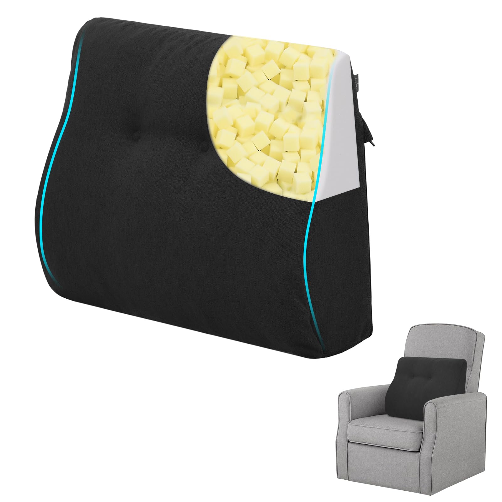 Almohada de apoyo lumbar para reclinable, cojín de respaldo de espuma viscoelástica con correas ajustables para mayor comodidad y