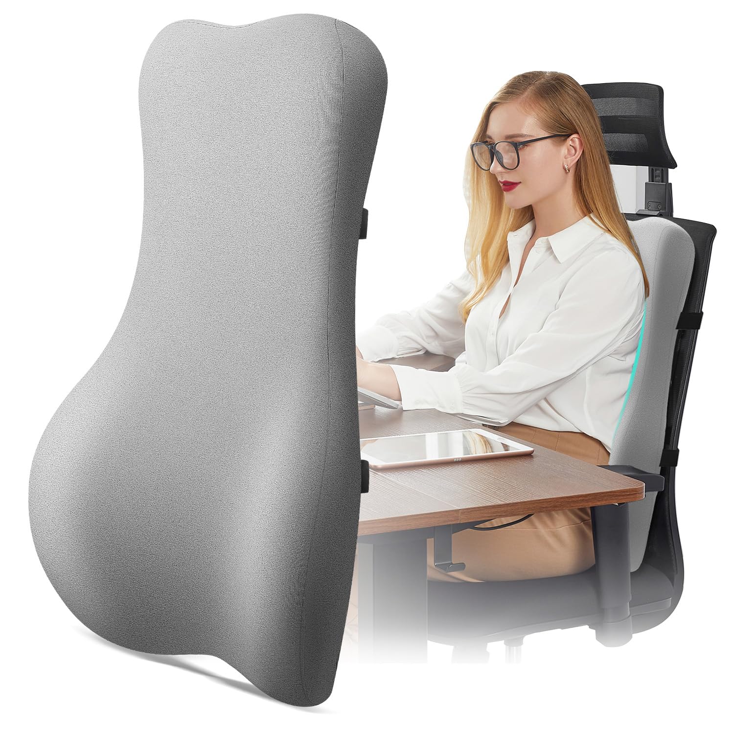 Everlasting Comfort – Almohada de apoyo lumbar para silla de oficina, cojín de memoria viscoelástica para automóvil, sofá, promuev