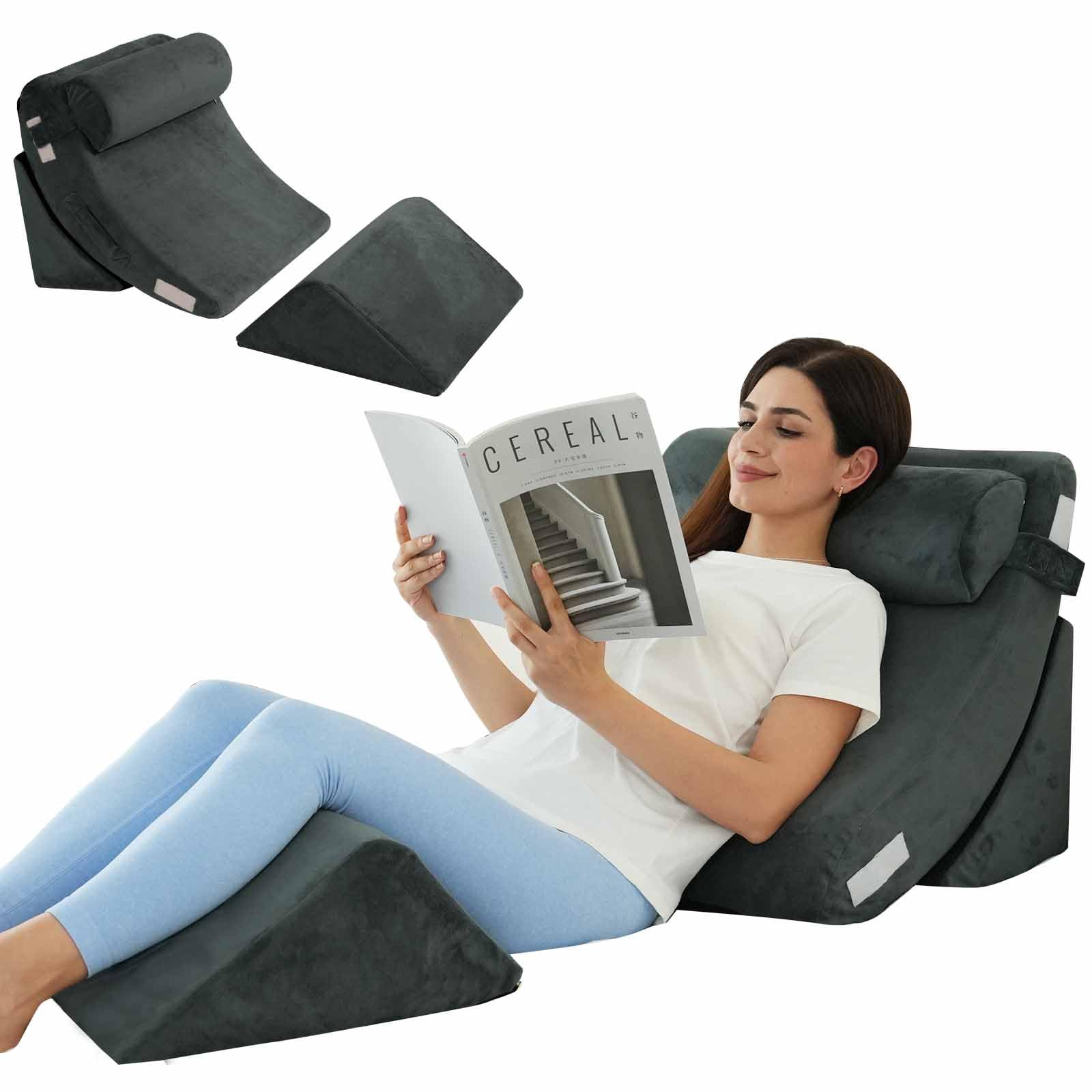 Ganaver Juego de 4 almohadas ortopédicas de cuña para cama poscirugía relajante para la espalda, cojín de apoyo ajustable para la