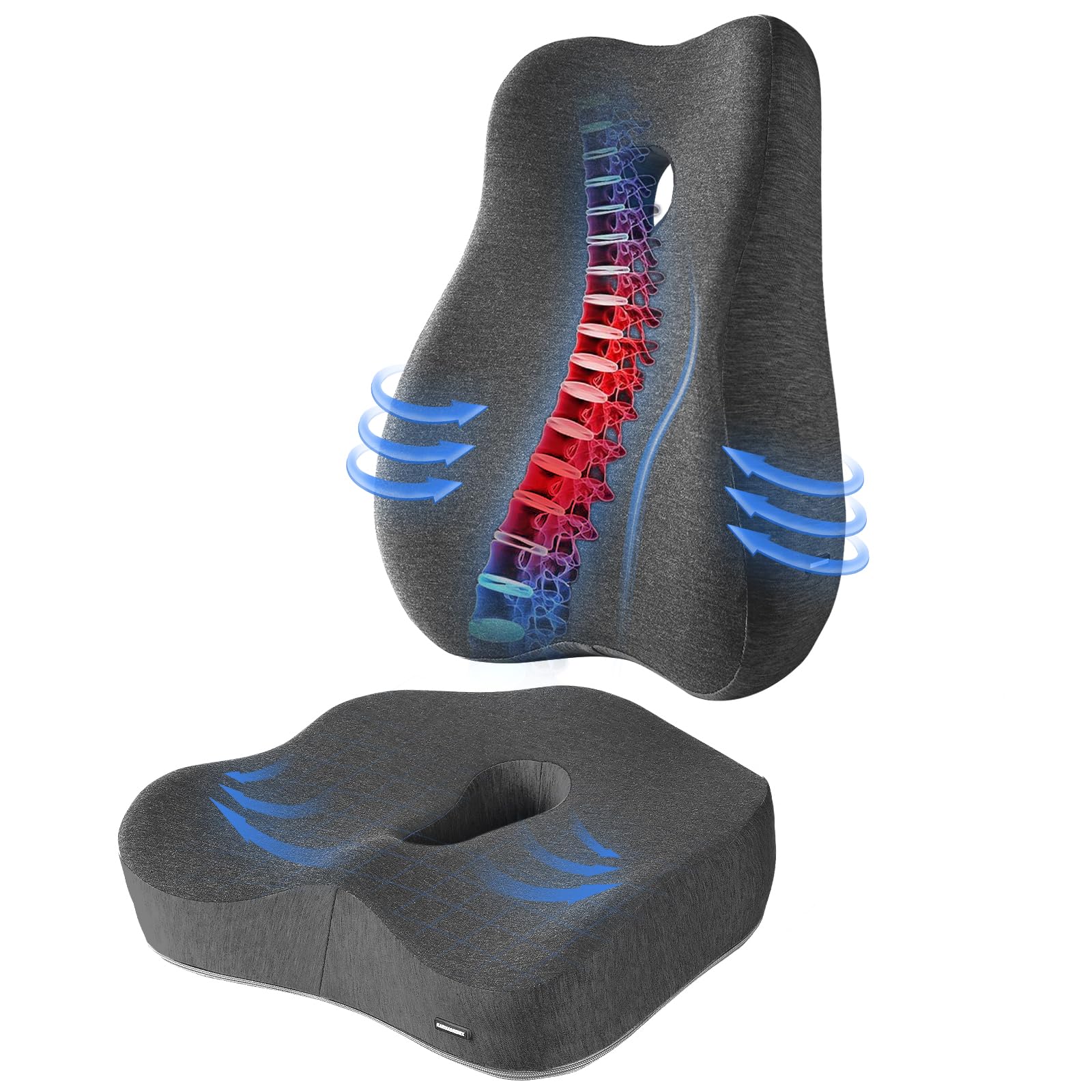 Ultimate Comfort – Juego de cojines para silla de oficina, alivia la ciática, el dolor de espalda y las molestias del coxis con al