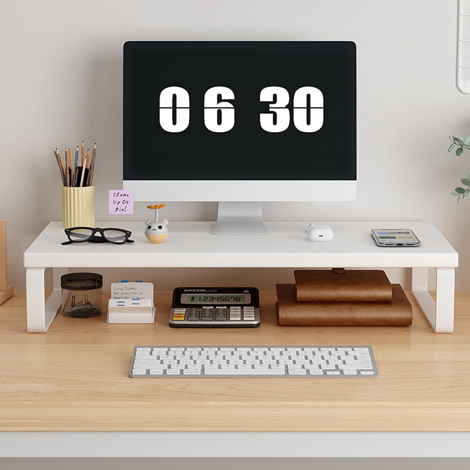 Monitor Riser,Monitor Stand for Desk -Metal Computer Riser with Solid Wood Decorative Strips.Desk Storage for Office, Home (with S