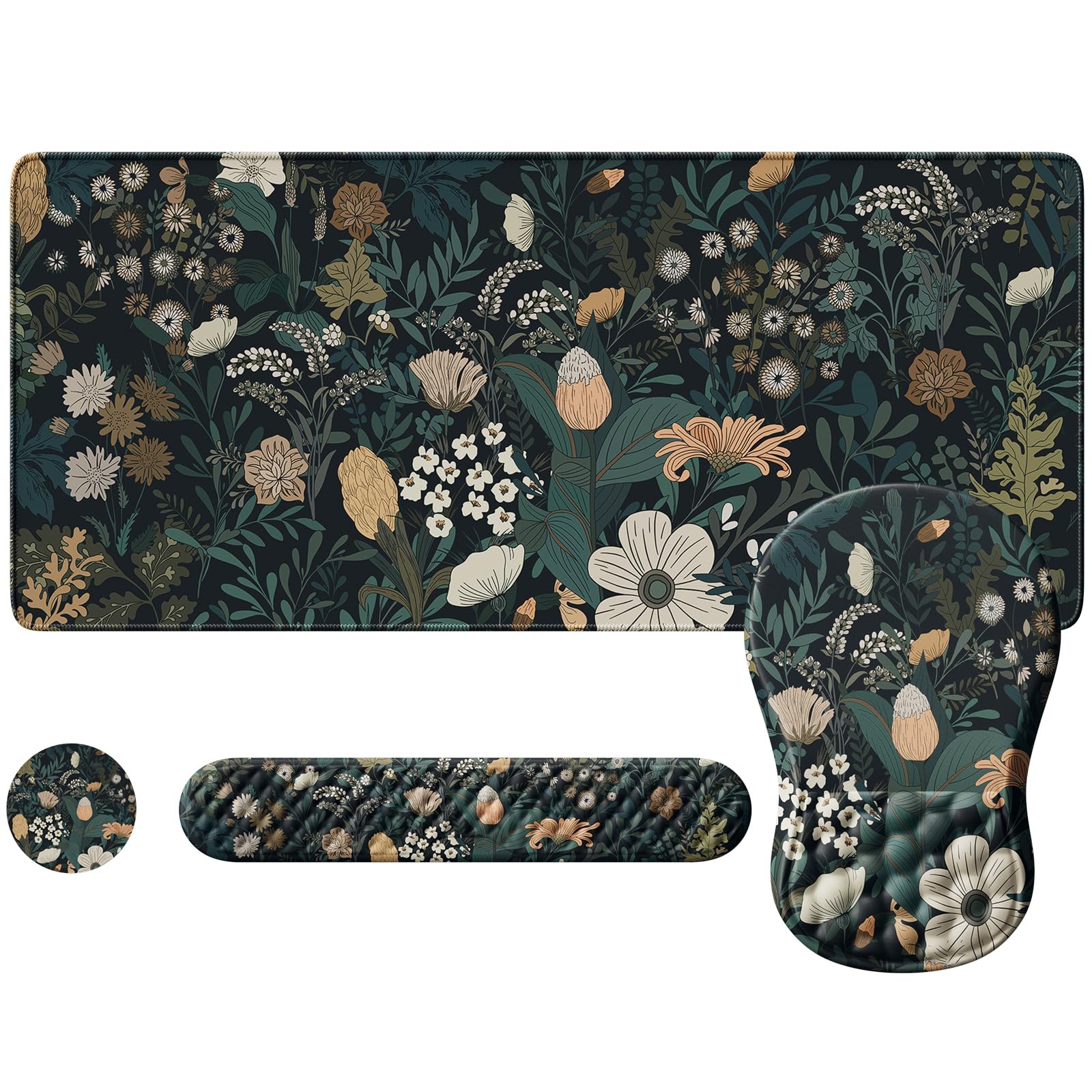 Tapete de escritorio de flores, alfombrilla grande 4 en 1 con reposamuñecas, alfombrilla de escritorio para escritorio, alfombrill