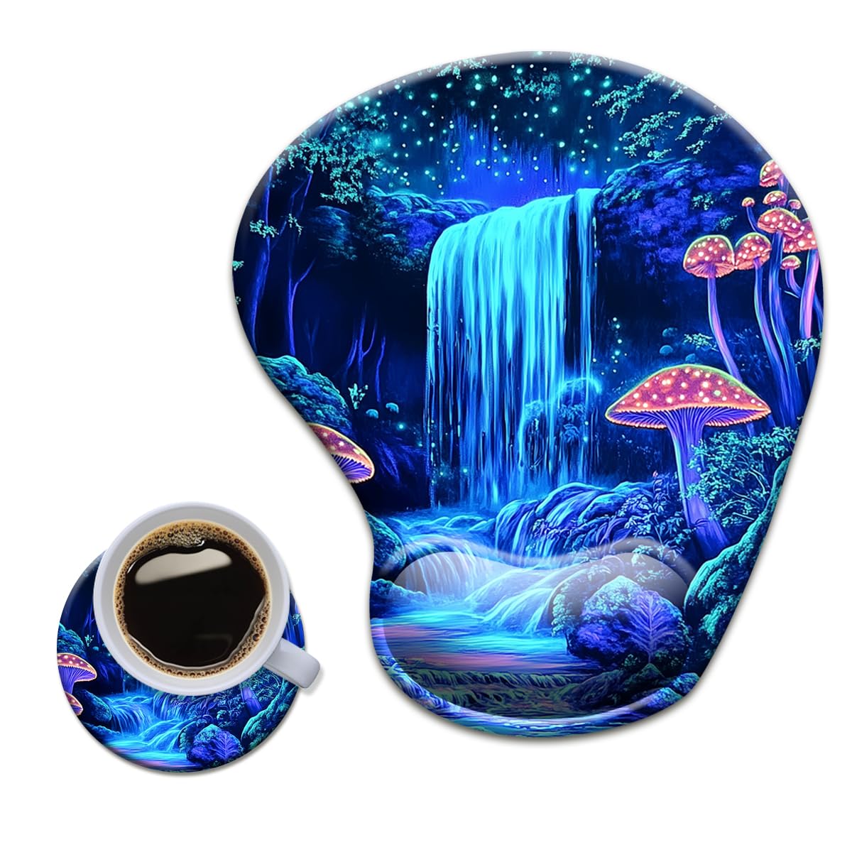 Alfombrilla ergonómica para mouse con reposamuñecas, reposamuñecas de gel grande, con posavasos antideslizante y alivio del dolor