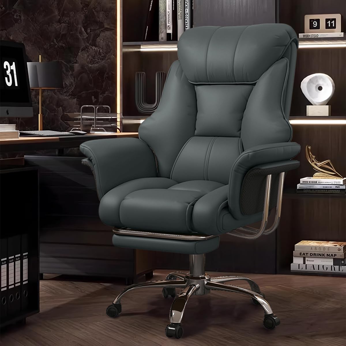 Silla de oficina grande y alta de 400 libras, silla de juegos de piel sintética con respaldo alto con reposapiés, sillas de oficin