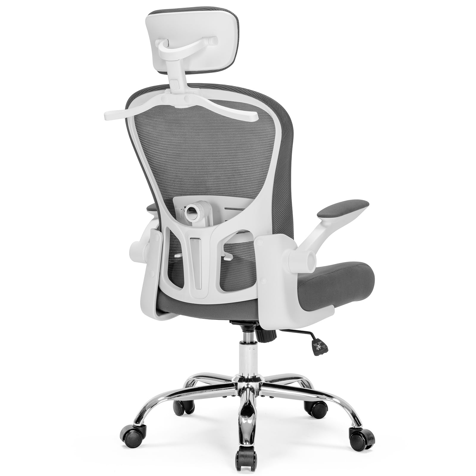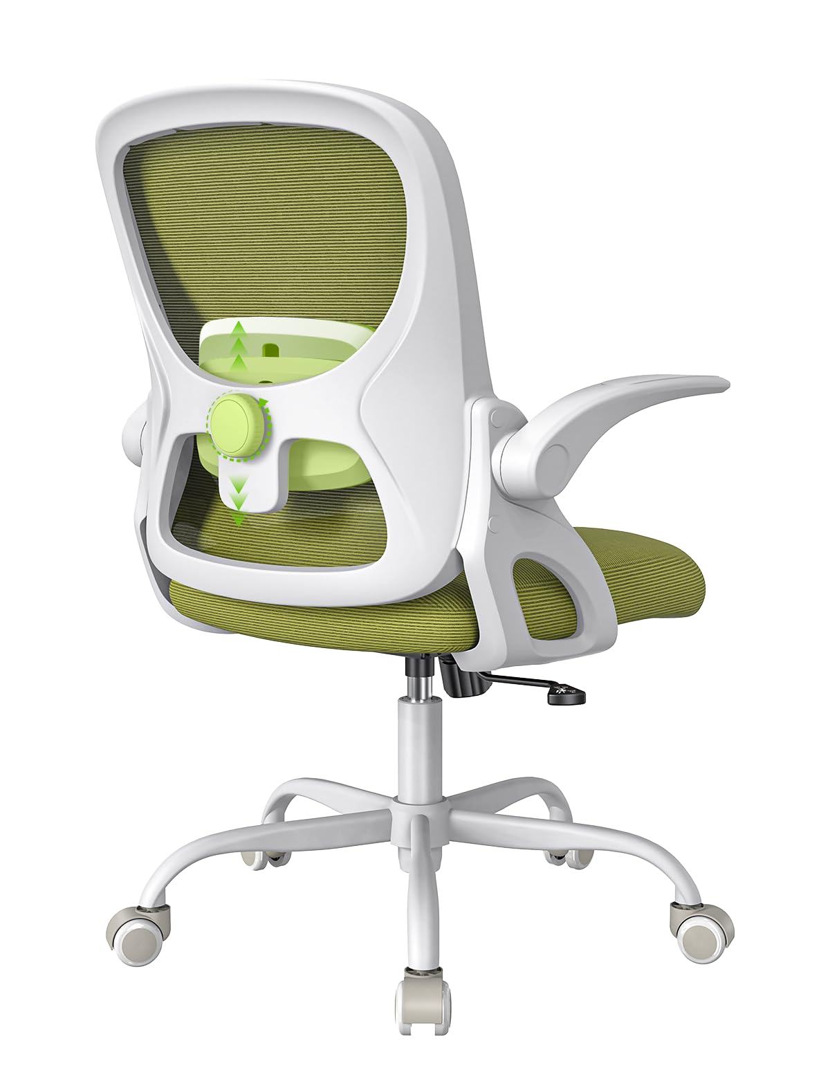 Silla de oficina en casa, silla de escritorio ergonómica de malla con soporte lumbar ajustable, brazo oscilante abatible, cómoda s