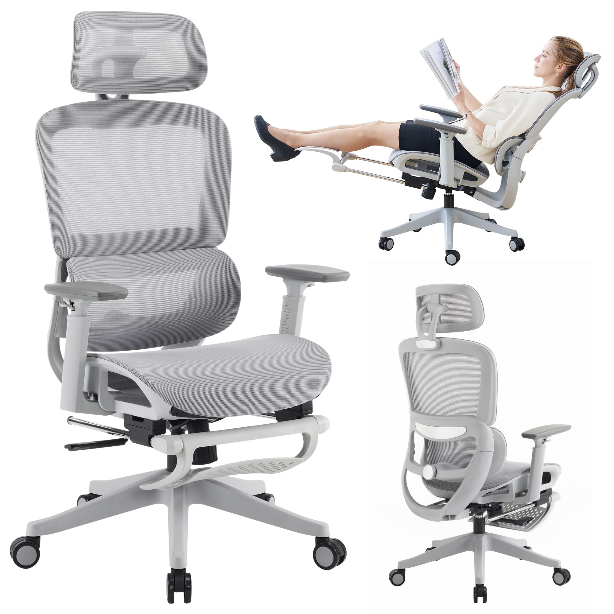 Aura – Silla de oficina de moda, ergonómica con respaldo alto y reposacabezas y reposapiés, sillas giratorias ergonómicas de malla