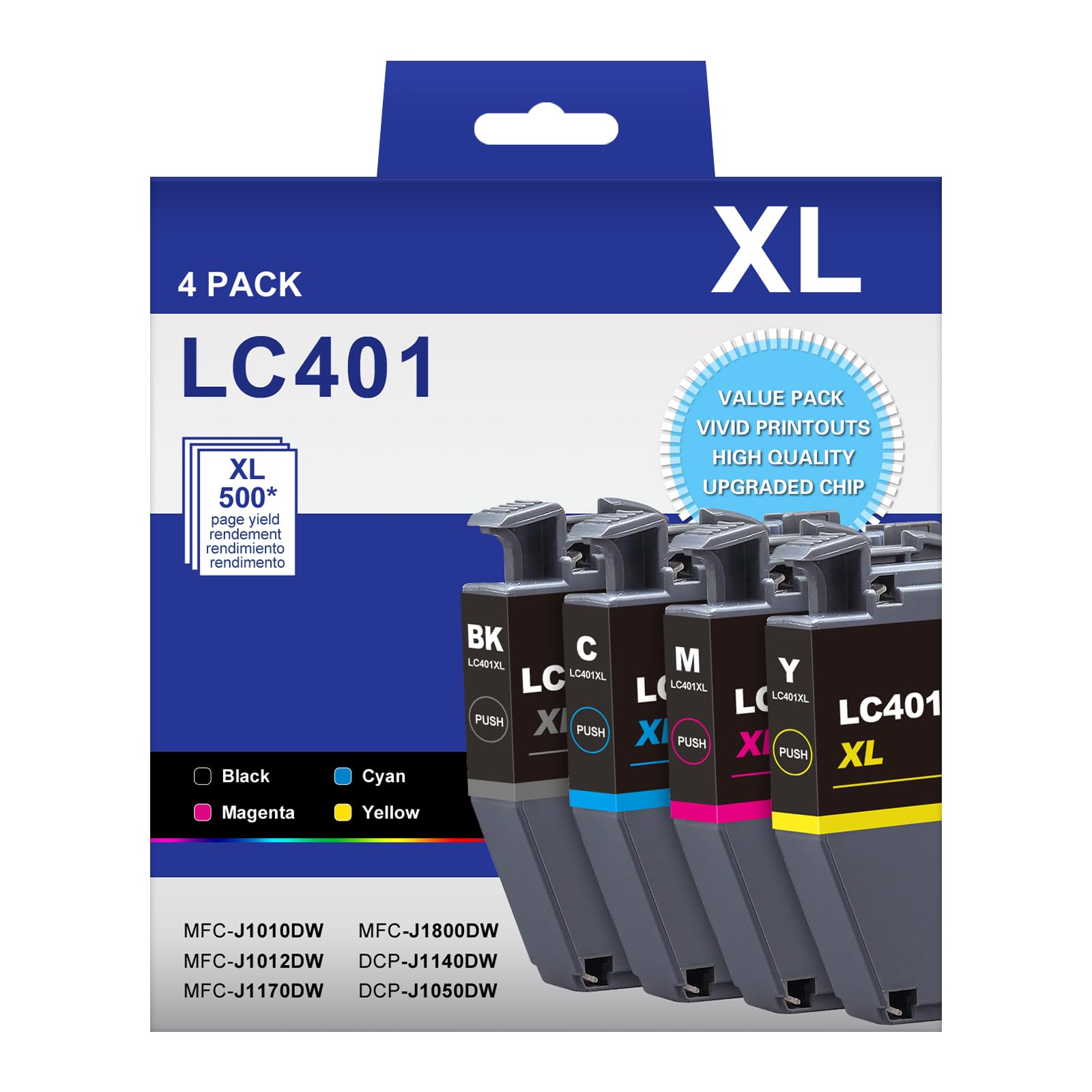 LC401XL LC401 – Paquete de 4 cartuchos de tinta MFC-J1010DW de alto rendimiento compatibles con cartuchos de tinta Brother 401XL L