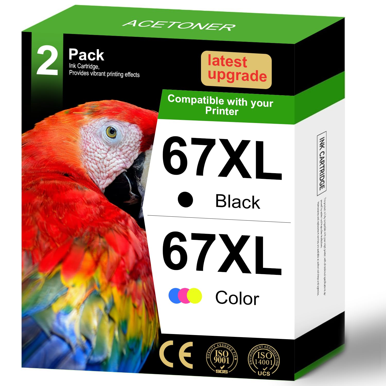 67XL Ink Cartridges Combo Pack Replacement for HP Ink 67 67XL 67XXL Work for HP Envy 6055 6000 DeskJet 2755e 2752 2700 4155 4100 S