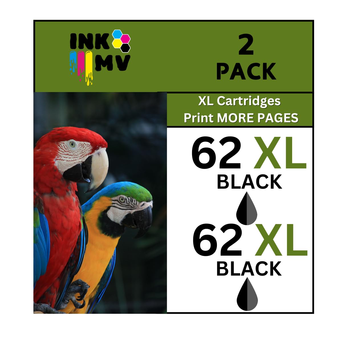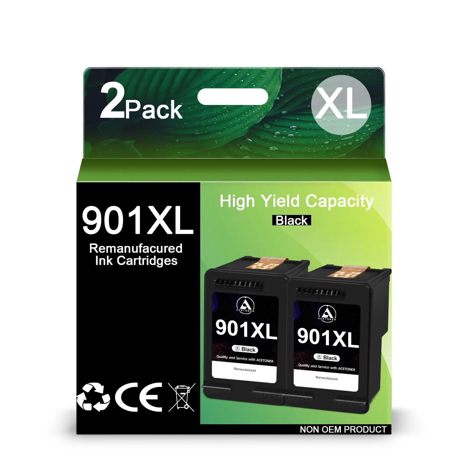 62XL Black Printer Cartridges, High-Yield XL Replacement for HP 62, 2 Pack
