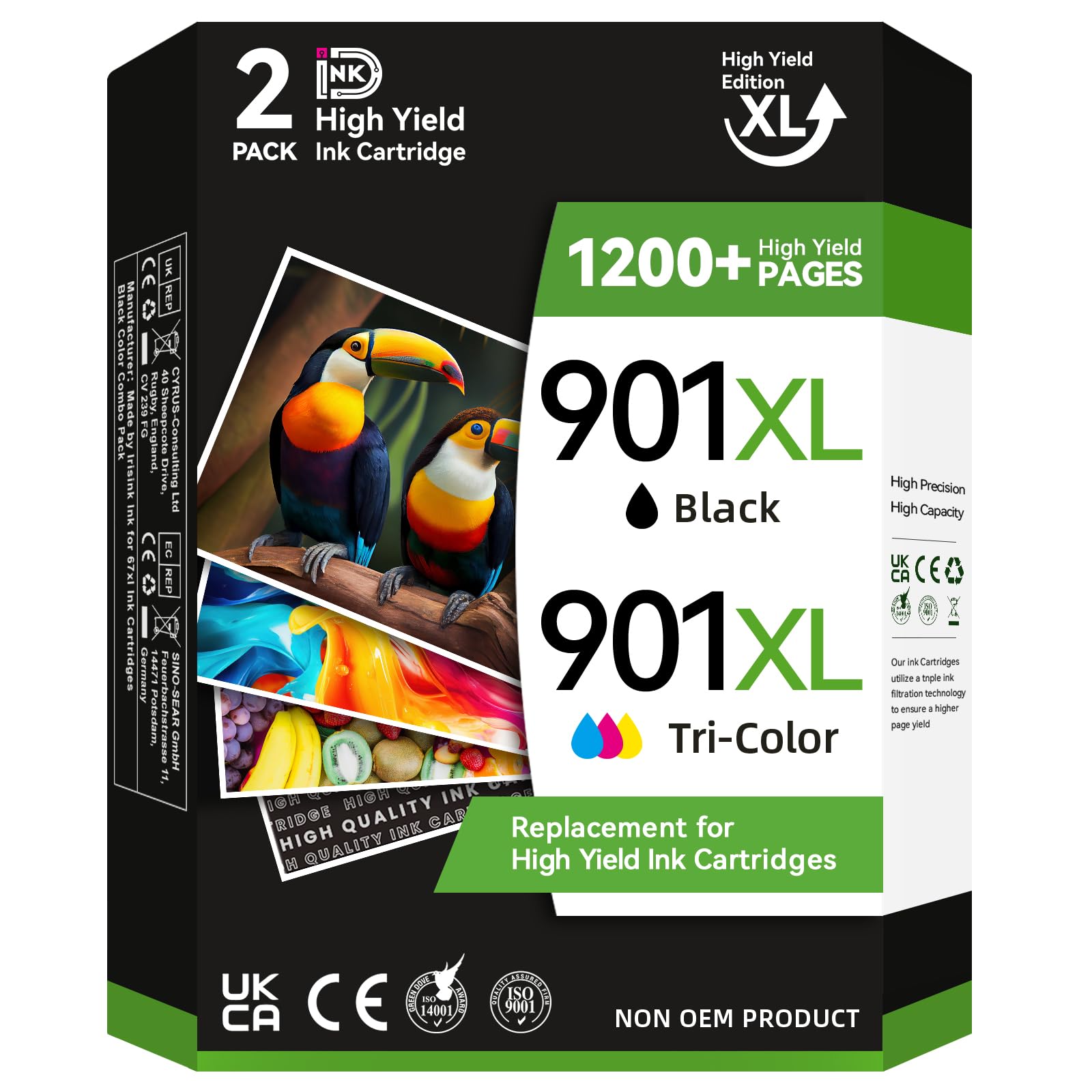 InkID 901XL – Cartucho de tinta compatible con HP 901, color negro, paquete combinado para OfficeJet J4550 J4680 J4580 J4540 J4500
