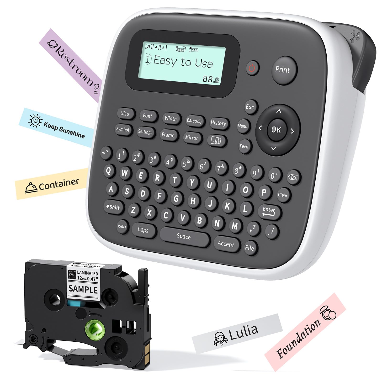 Zodzi LT12 – Máquina etiquetadora con cinta, portátil sin tinta, compatible con teclado y Bluetooth, impresora térmica de etiqueta
