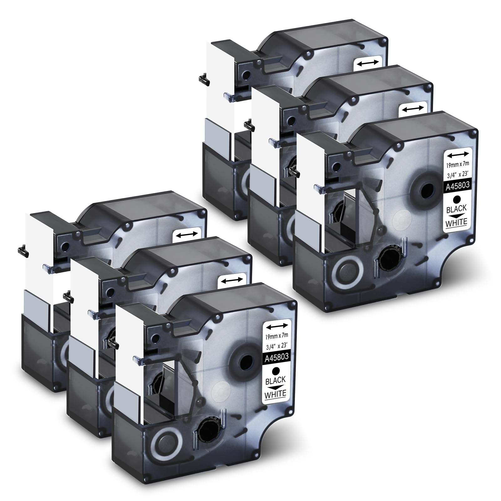 GREENCYCLE Paquete de 6 cintas de etiquetas compatibles con DYMO D1 45803 3/4 pulgadas x 23 pies, repuestos para etiquetadoras D1