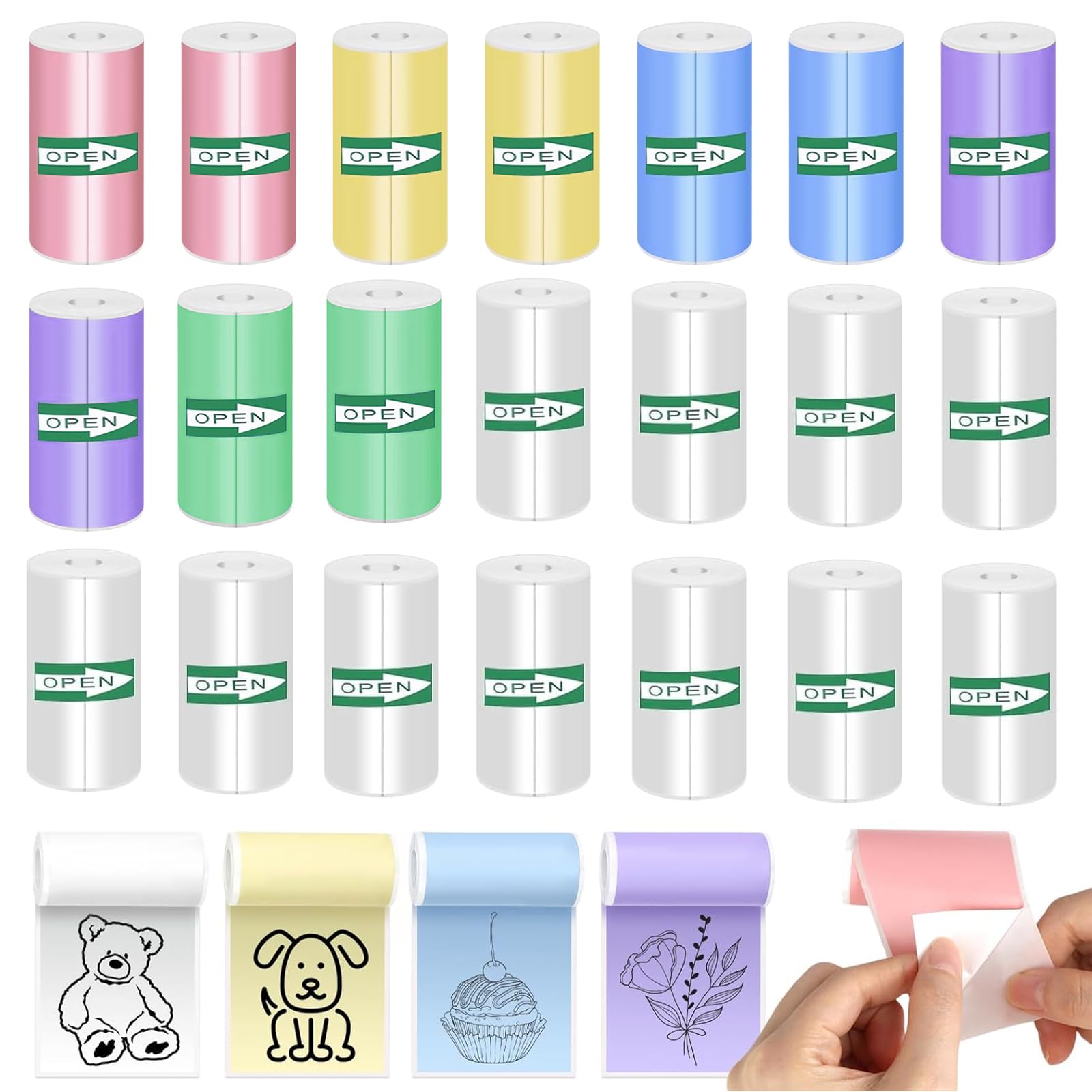 20 mini papel adhesivo térmico para impresora, incluye 10 rollos de papel adhesivo térmico multicolor, para fotos, listas de tarea