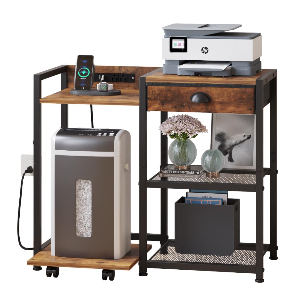 Soporte de impresora con tomas de corriente y archivador, mesa de impresora móvil con 2 cajones, carrito de impresora multifuncion
