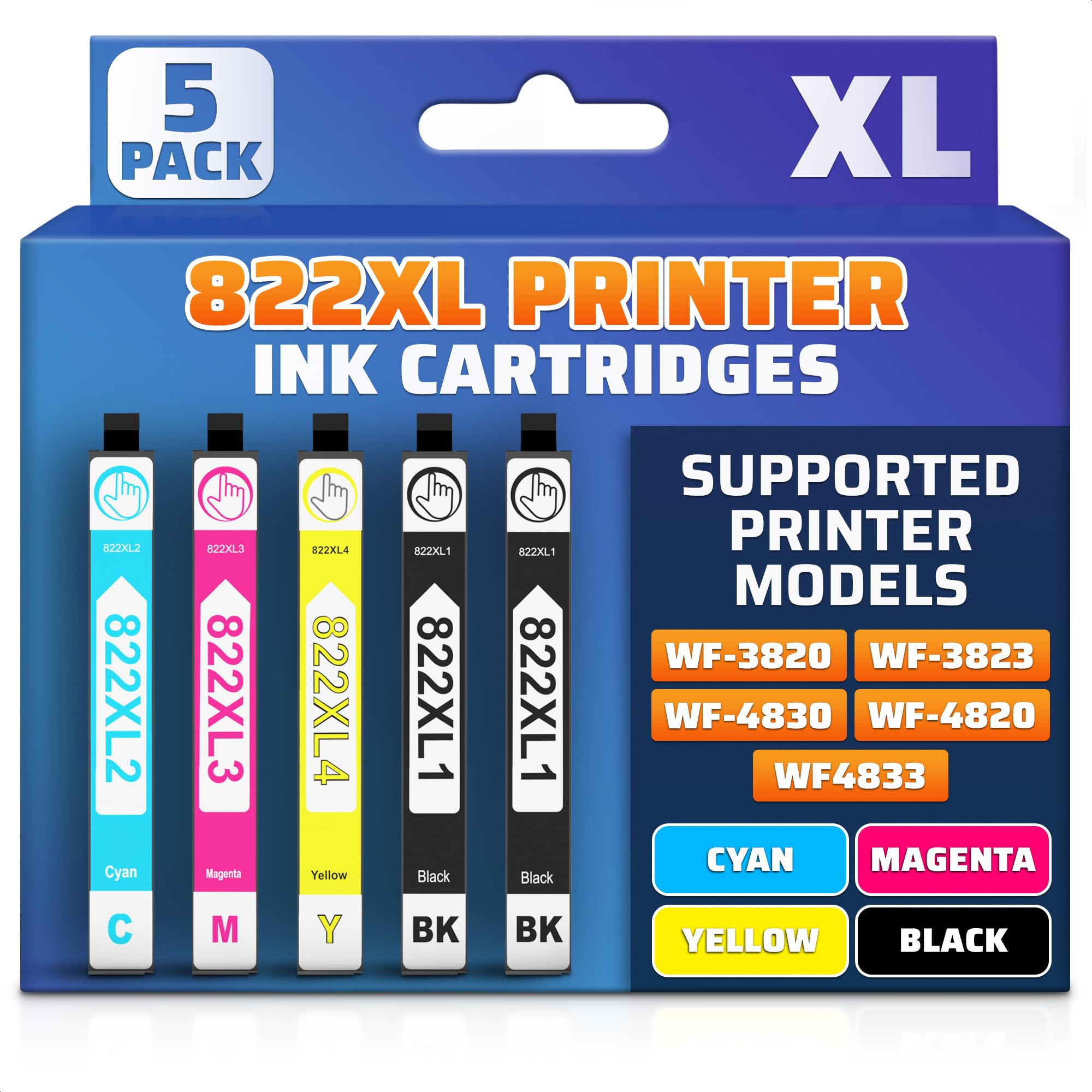 Reluen 5 cartuchos de tinta para impresora 822XL, alta capacidad, 2 negros y 3 colores estándar, compatibles con impresoras WF-382