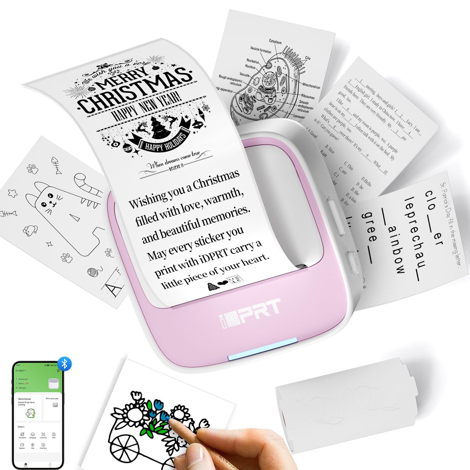 iDPRT Mini impresora de calcomanías – S1 máquina portátil para hacer calcomanías con 1 rollo de papel adhesivo, impresora de bolsi