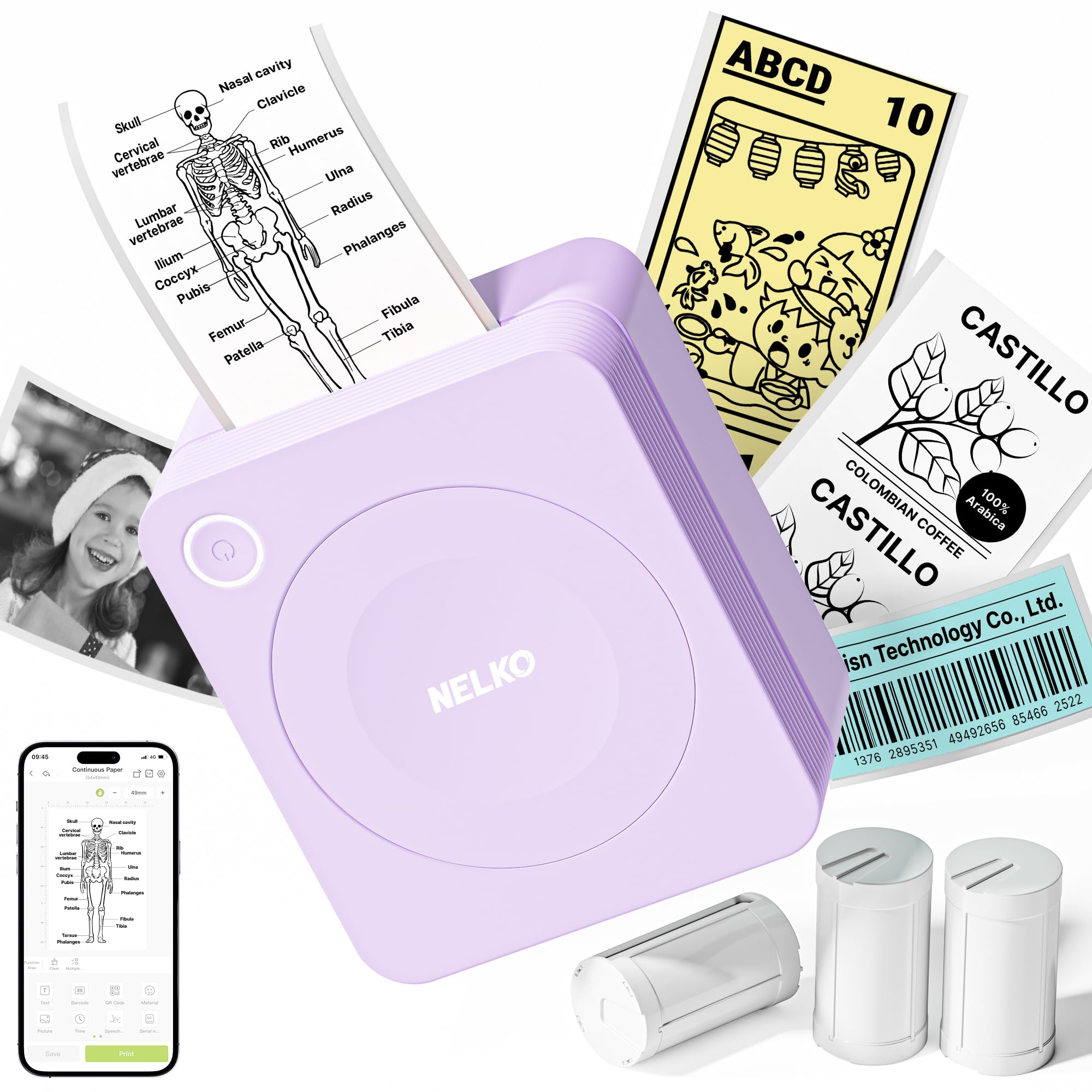 Nelko Impresora de calcomanías, impresora PM230, mini impresora Bluetooth portátil con 3 rollos de papel, cápsulas de impresión mi
