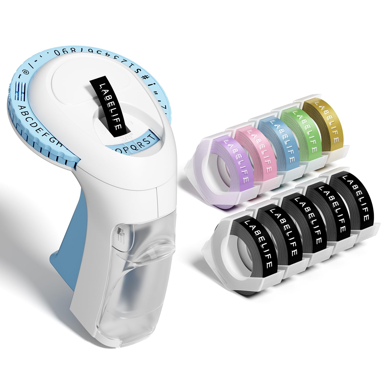 Labelife Máquina etiquetadora en relieve con cintas, Omega S Vintage en relieve, máquina de estampado retro con 3 rollos de cintas