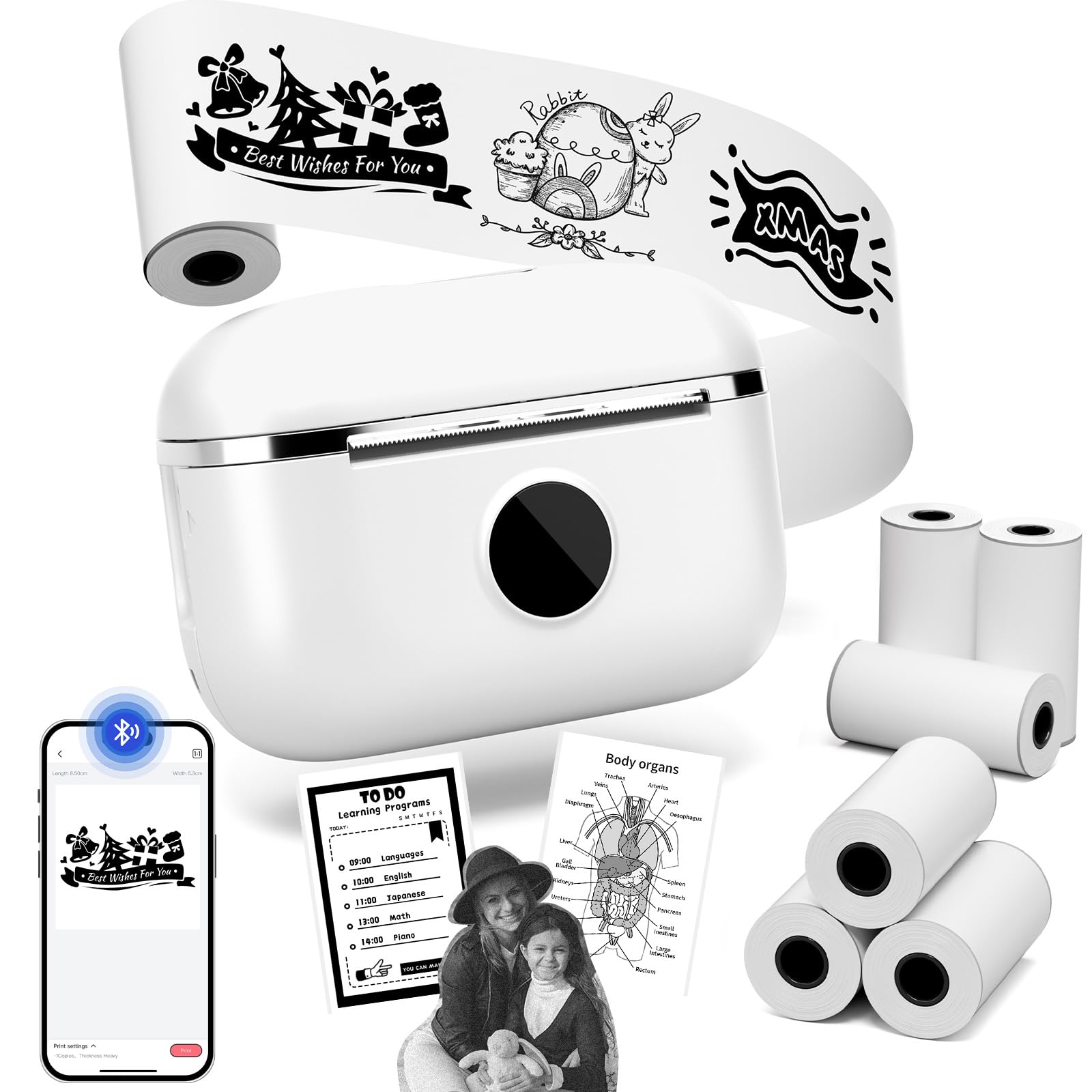 Impresora de calcomanías Printpods Mini impresora con 6 rollos de cinta, máquina de impresión de cápsulas Bluetooth para niños, et