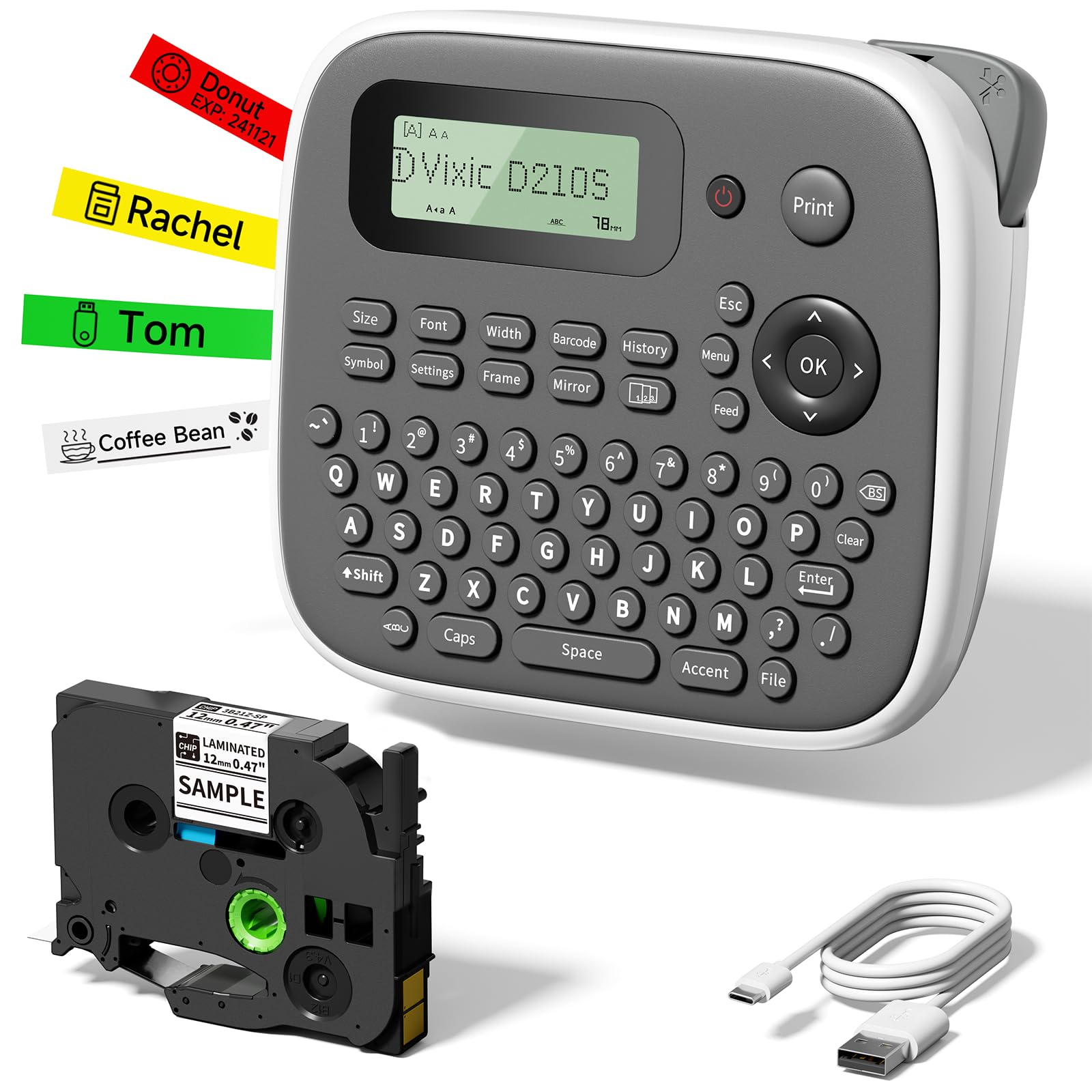 Etiquetadora, máquina etiquetadora con cinta de 0.472 in 0.47 de color blanco laminado, D210S etiquetadora portátil con teclado, m