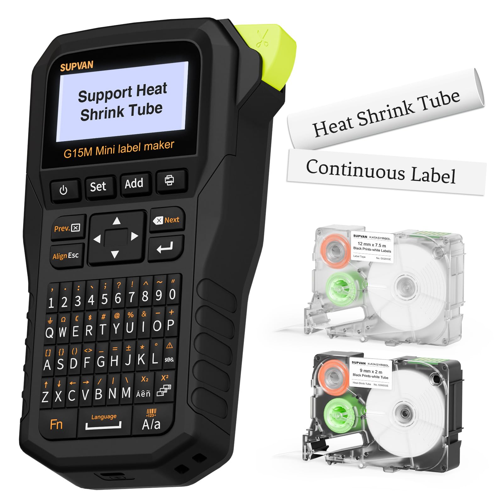 SUPVAN G15M Mini máquina etiquetadora portátil con tubo termorretráctil, batería recargable de 1200 mAh, impresora de transferenci