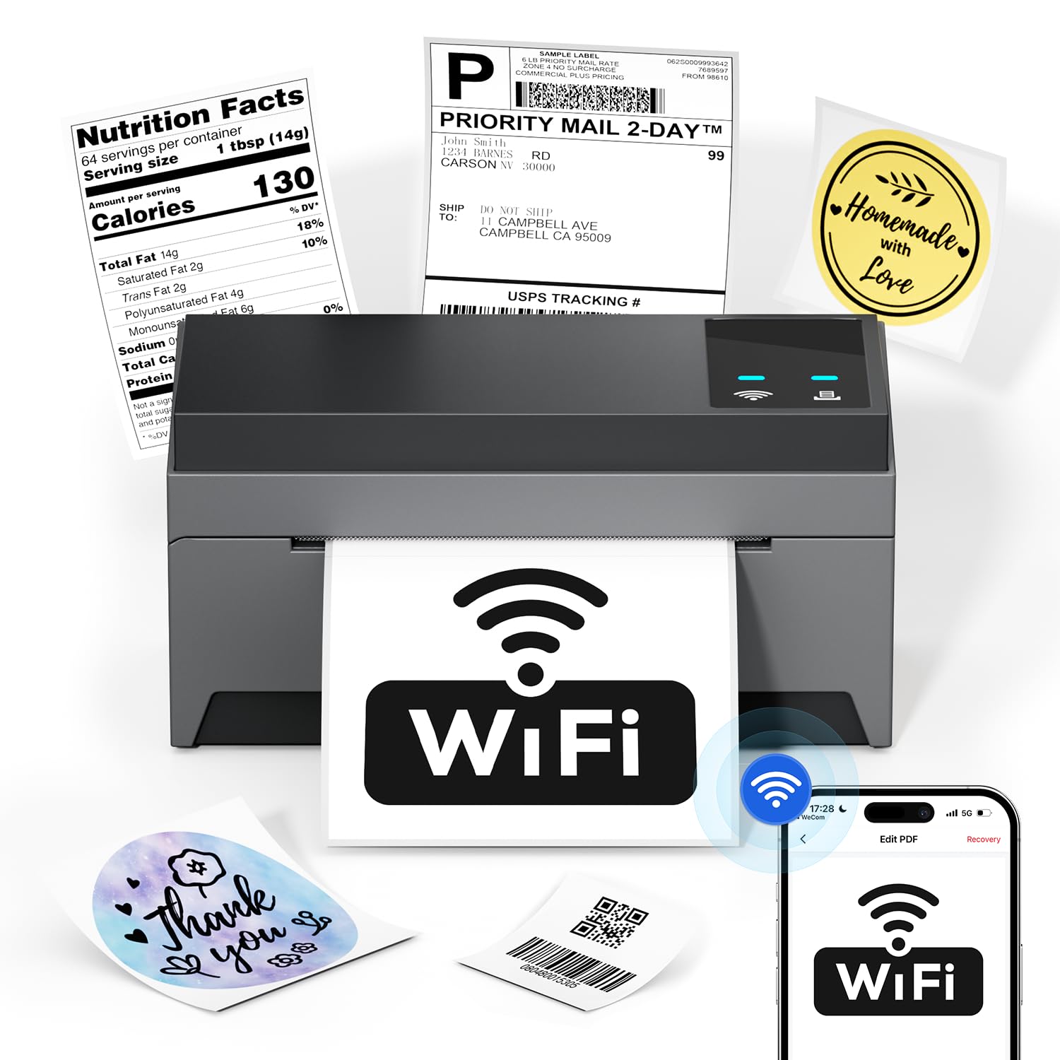 Phomemo Impresora térmica de etiquetas WiFi, impresora de etiquetas de envío inalámbrica 5G para pequeñas empresas, impresoras tér