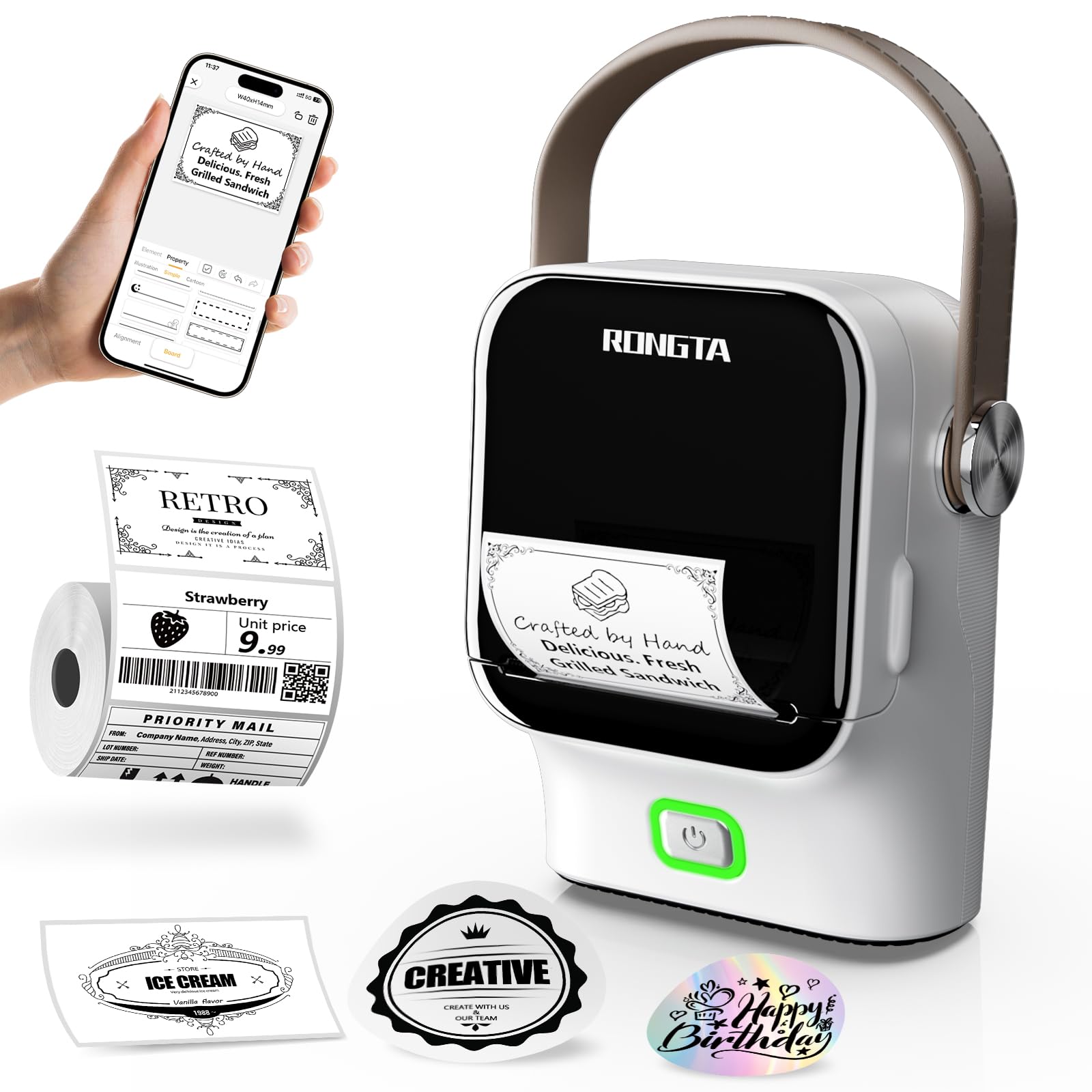 Rongta Etiquetadora de 2 pulgadas, máquina etiquetadora inalámbrica Bluetooth portátil con cinta, fabricante de calcomanías de man