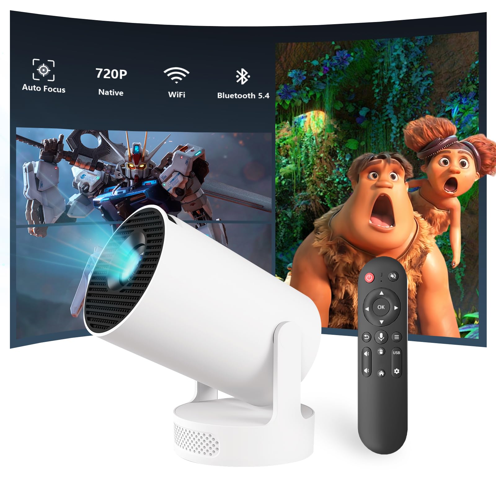 [Aplicaciones integradas y enfoque automático] Proyector portátil HUANLETOU 2025 1080P Smart Mini proyector compatible con 4K 180°