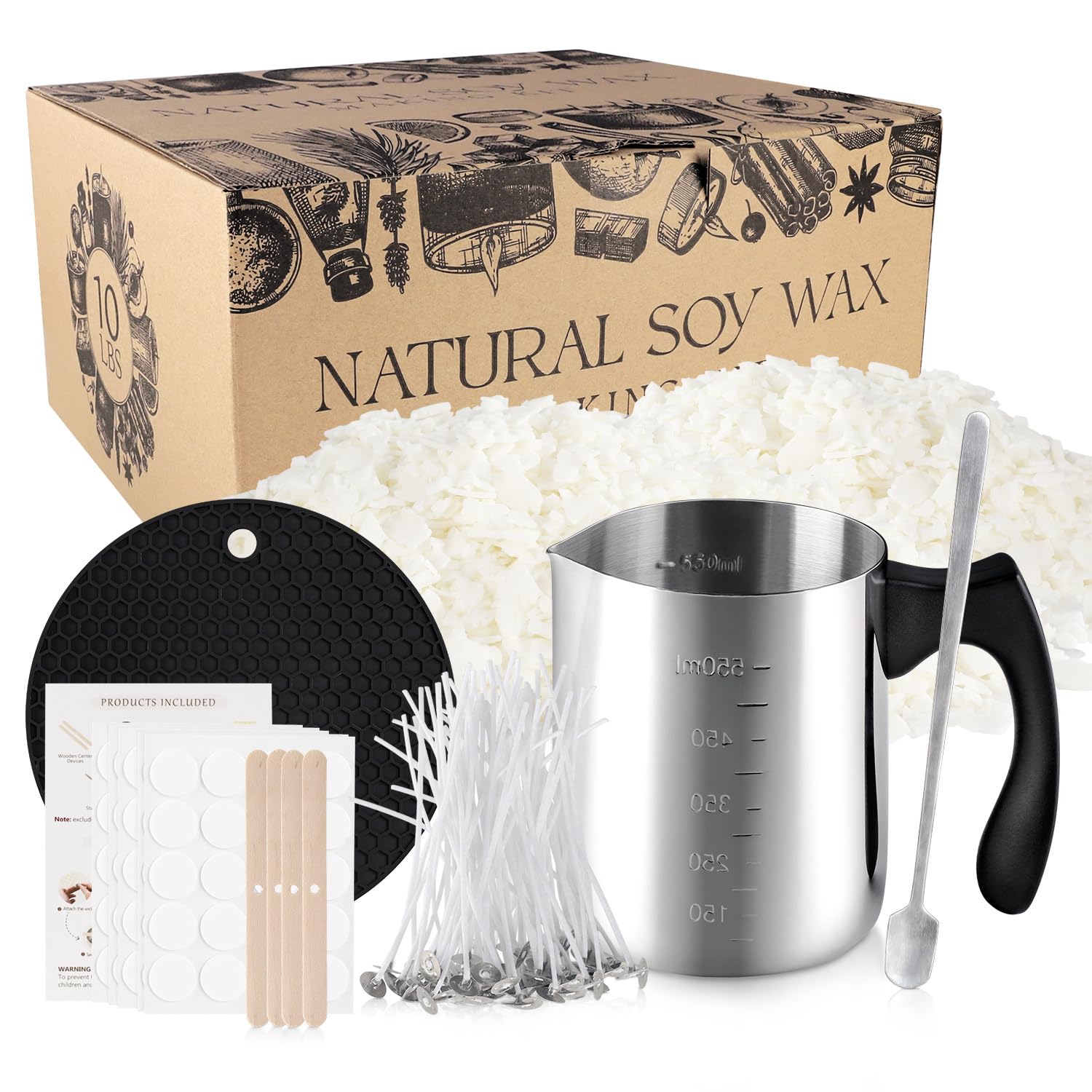 SAEUYVB Kit de fabricación de velas: suministros para hacer velas de soja con derretidor de cera, incluye cera de soja, 10 frascos