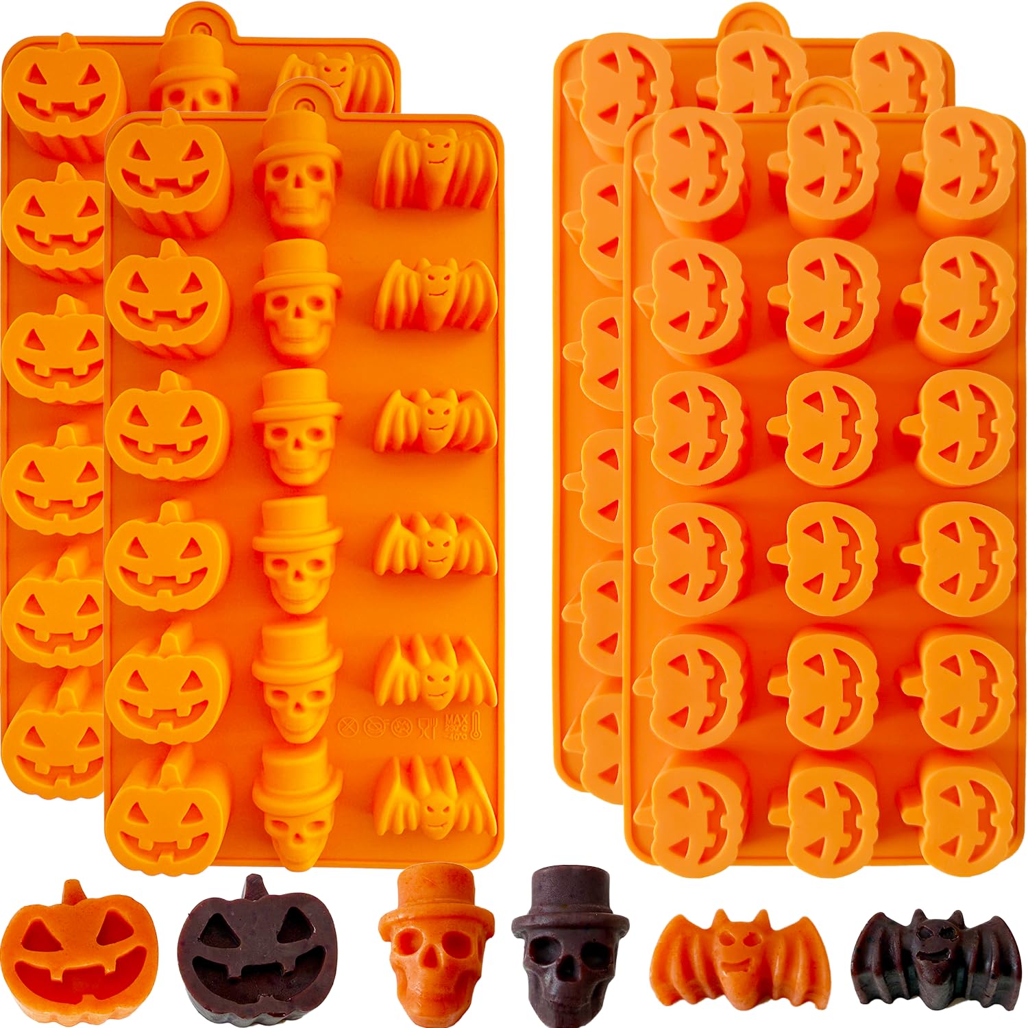 Paquete de 4 moldes de chocolate con caramelo de Halloween, molde de chocolate con calabaza, calabaza, murciélago, calavera, molde