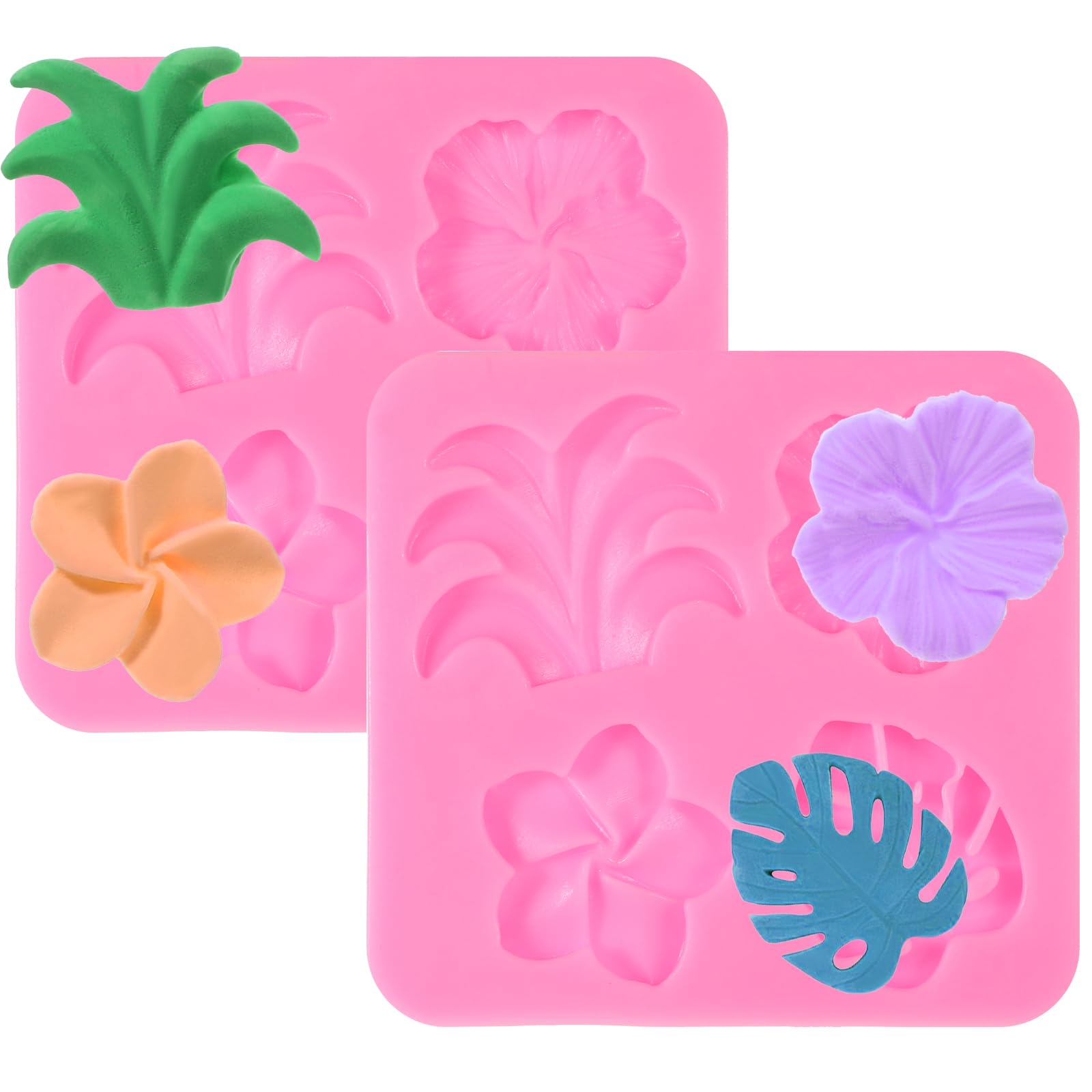 2 Pieces Tropical Flowers Leaves Silicone Mold, Plumeria Hibiscus Leaf Chocolate Fondant Mold for Cake Decoration Cupcake Topper P