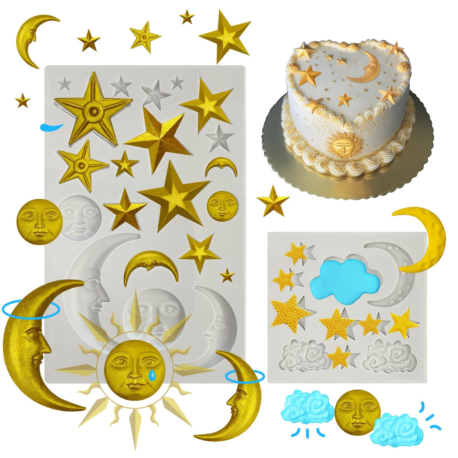 Celestial Sun Moon Stars Silicone Mold, Food Grade Baking Mold for Fondant Cake Decorating, Chocolate, Clay Crafts