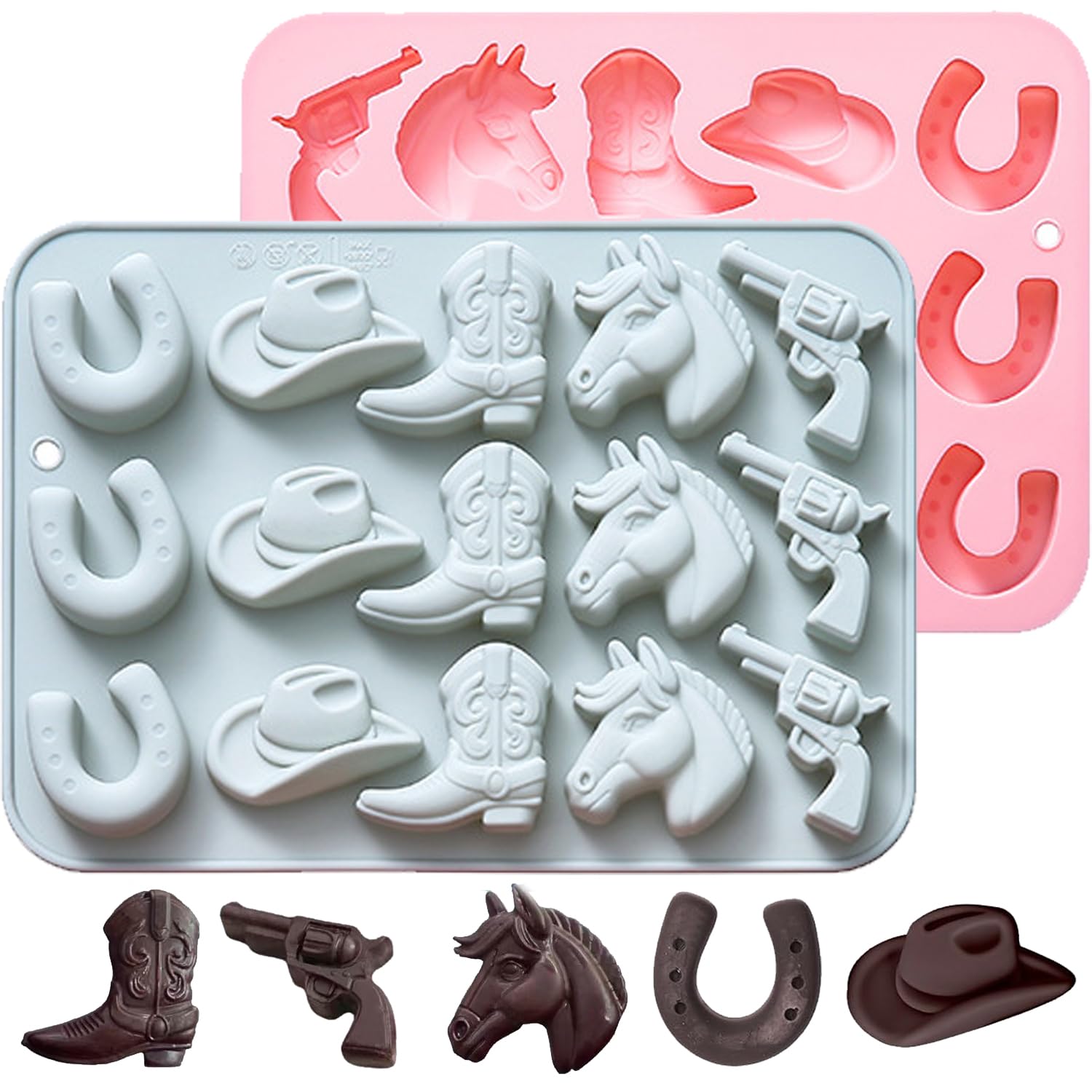 Cowboy Chocolate Molds Silicone, Western Cowboy Hat Boot Horse Molds for Chocolate Candy Gummy Mould for Cowboy Theme Parties Cake