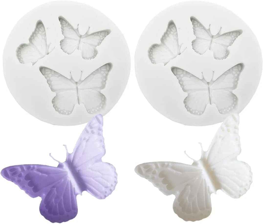 2pcs White Mini Butterfly Molds Silicone Fondant Molds Cute Butterfly Soap Epoxy Resin Mold Sugarcraft Candy Chocolate Molds for S