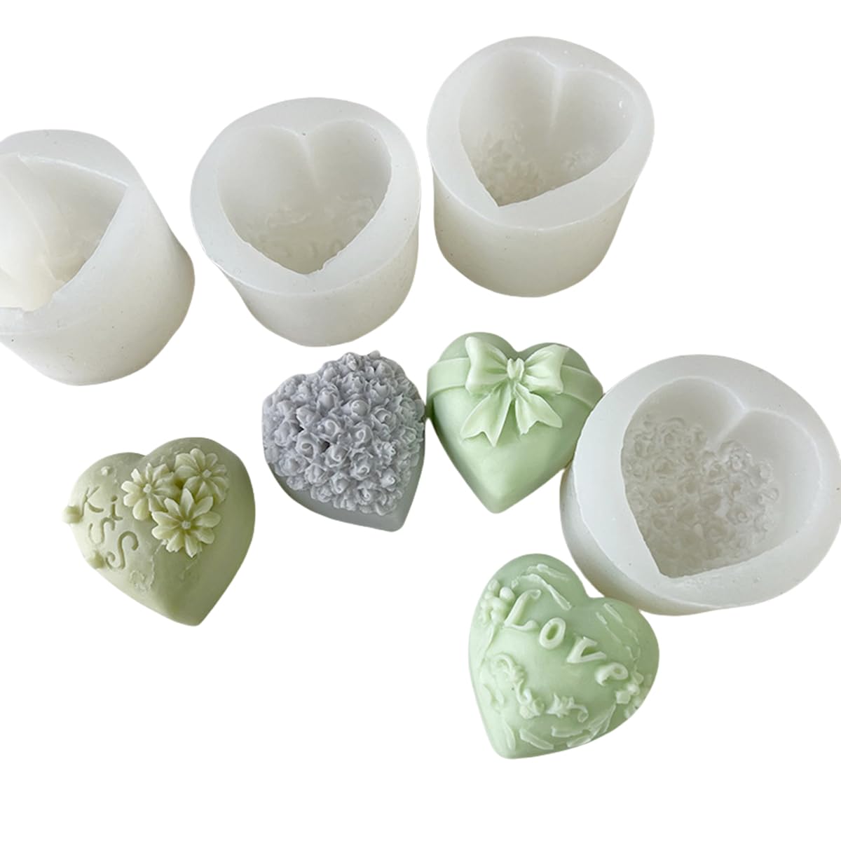Heart Shaped Silicone Mold Set, Love Pattern Candle Making Molds, Wedding Cake Decoration and Chocolate Molds, 4 Designs
